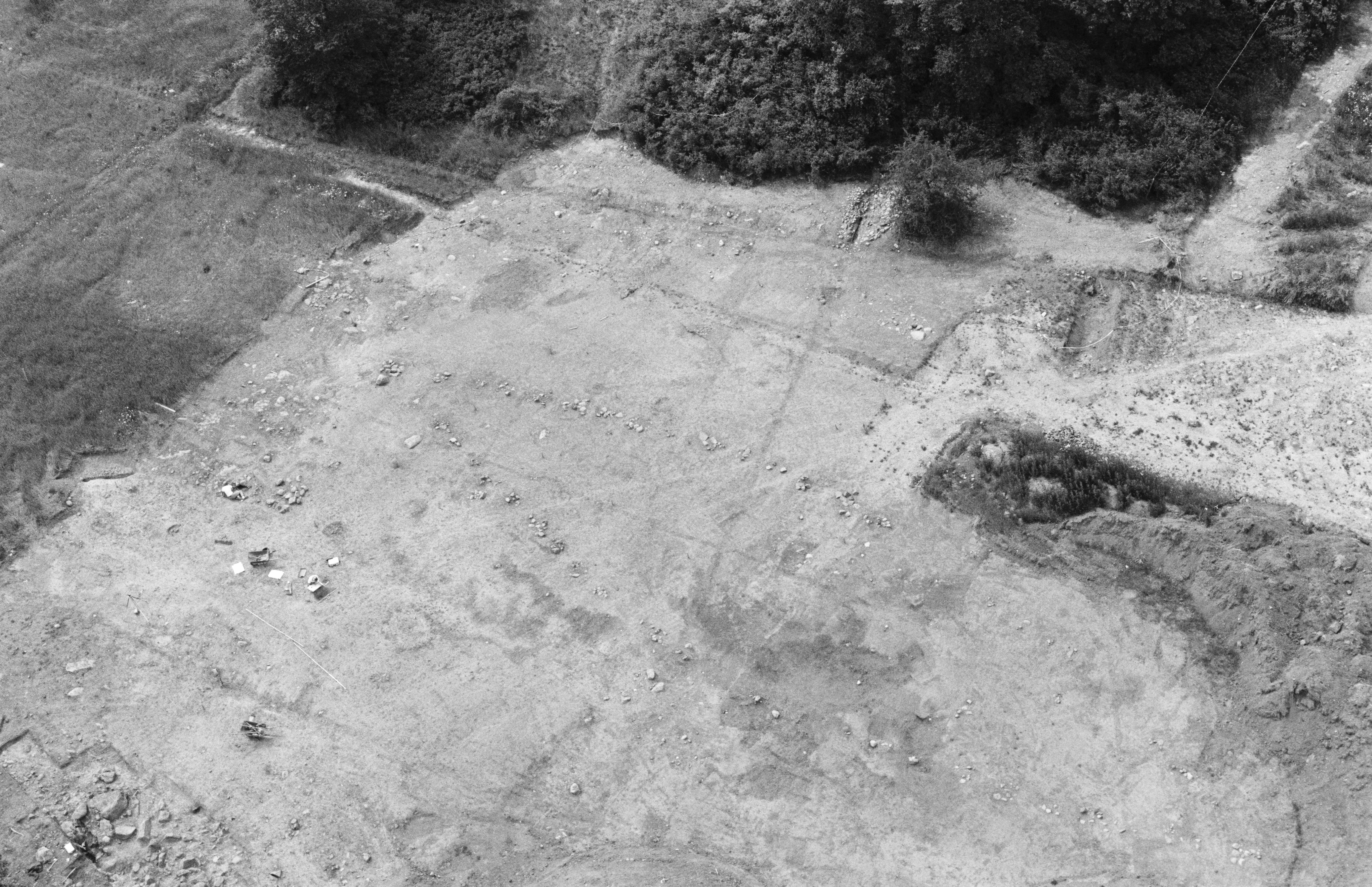 Beskrivning: Linköpings stad vid Stångebro i stadsdelen Kallerstad. Arkeologisk undersökning av skeppssättning vid Gumpekullastenen RAÄnr Linköping 143:1. Bilden är tagen mot (väderstreck): SV