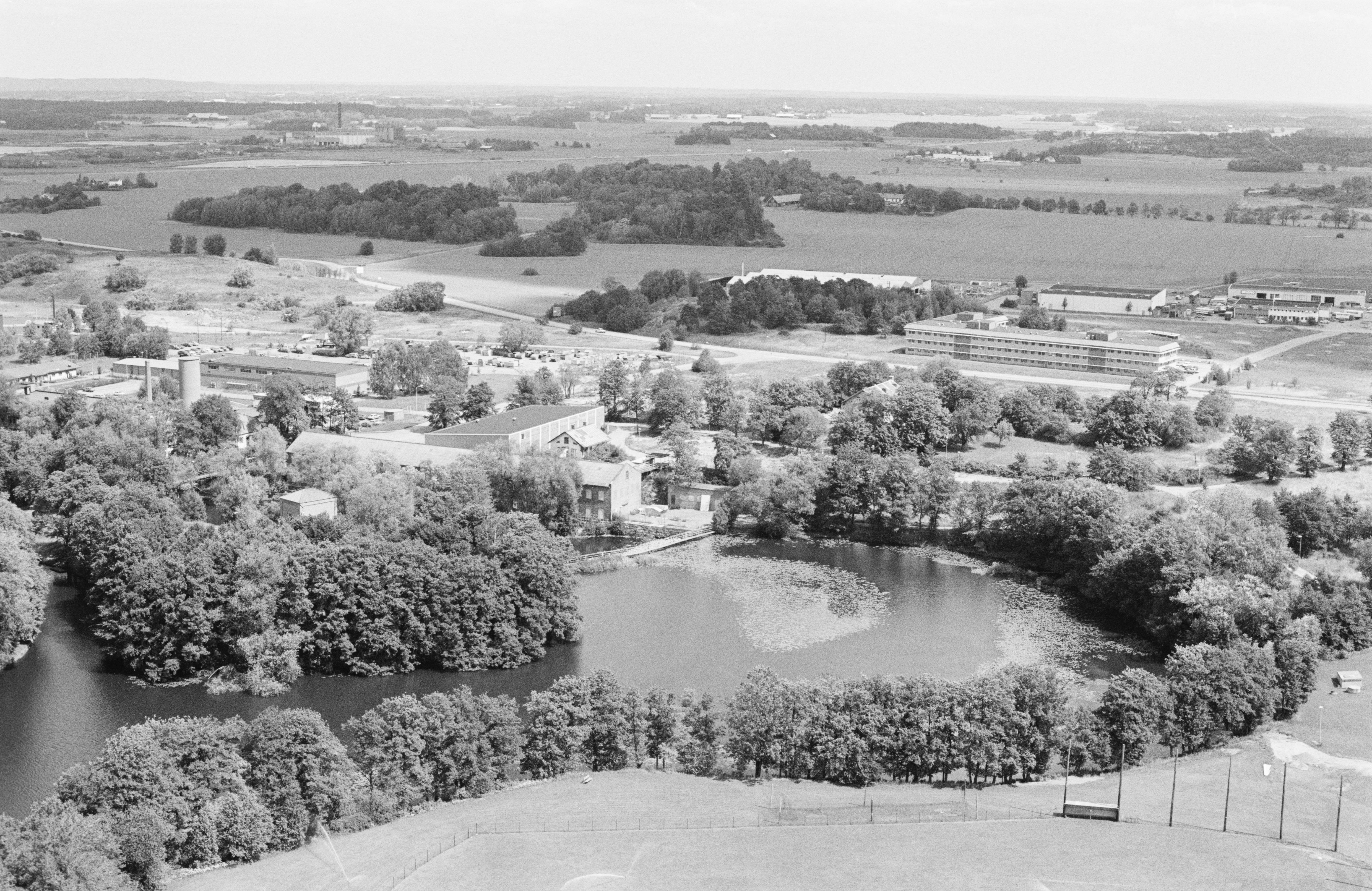 Beskrivning: Linköpings stad. Stångeån vid Stångebro i stadsdelen Kallerstad. Vid bildens mitt RAÄnr boplats Linköping 142:1-3, skeppssättning vid Gumpekullastenen RAÄnr Linköping 143:1-3, m.fl. Bilden är tagen mot (väderstreck): ONO