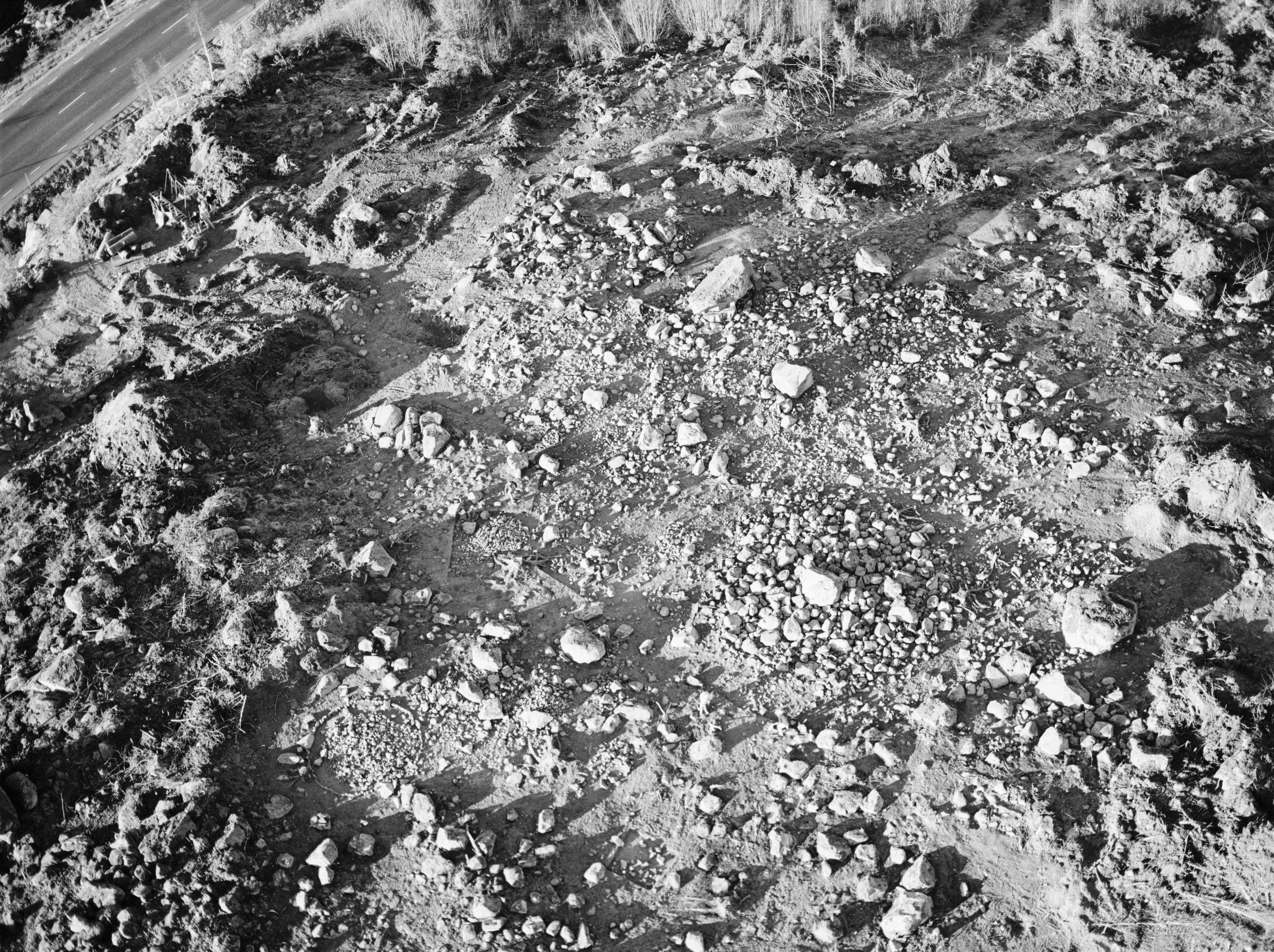 Beskrivning: Folkesta i nordvästra delen av tätorten Hällbybrunn. Vid bildens mitt arkeologisk undersökning av grav- och boplats RAÄnr Torshälla 145:1 innan nybyggnation. Bilden är tagen mot (väderstreck): VNV