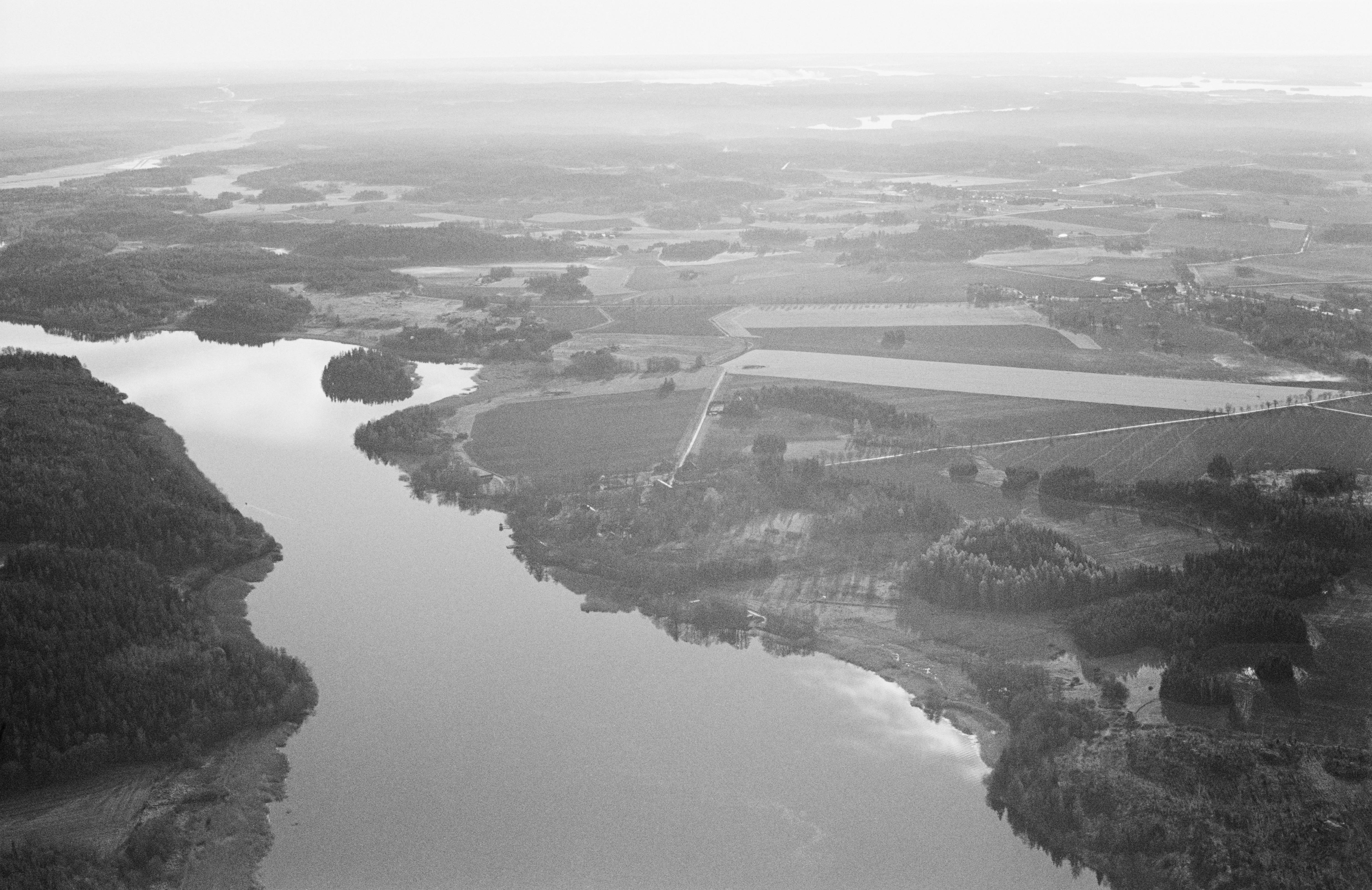 Beskrivning: Håtunaviken i Mälaren. Viken markerar gränsen mellan socknen Håtuna och Sankt Per (till vänster). Till höger om bildens mitt Signhildsbergs kungsgård med husgrund Fornsigtuna RAÄnr Håtuna 101:1, gravfält Håtuna 99:1 m.fl. Bilden är tagen mot (väderstreck): SO