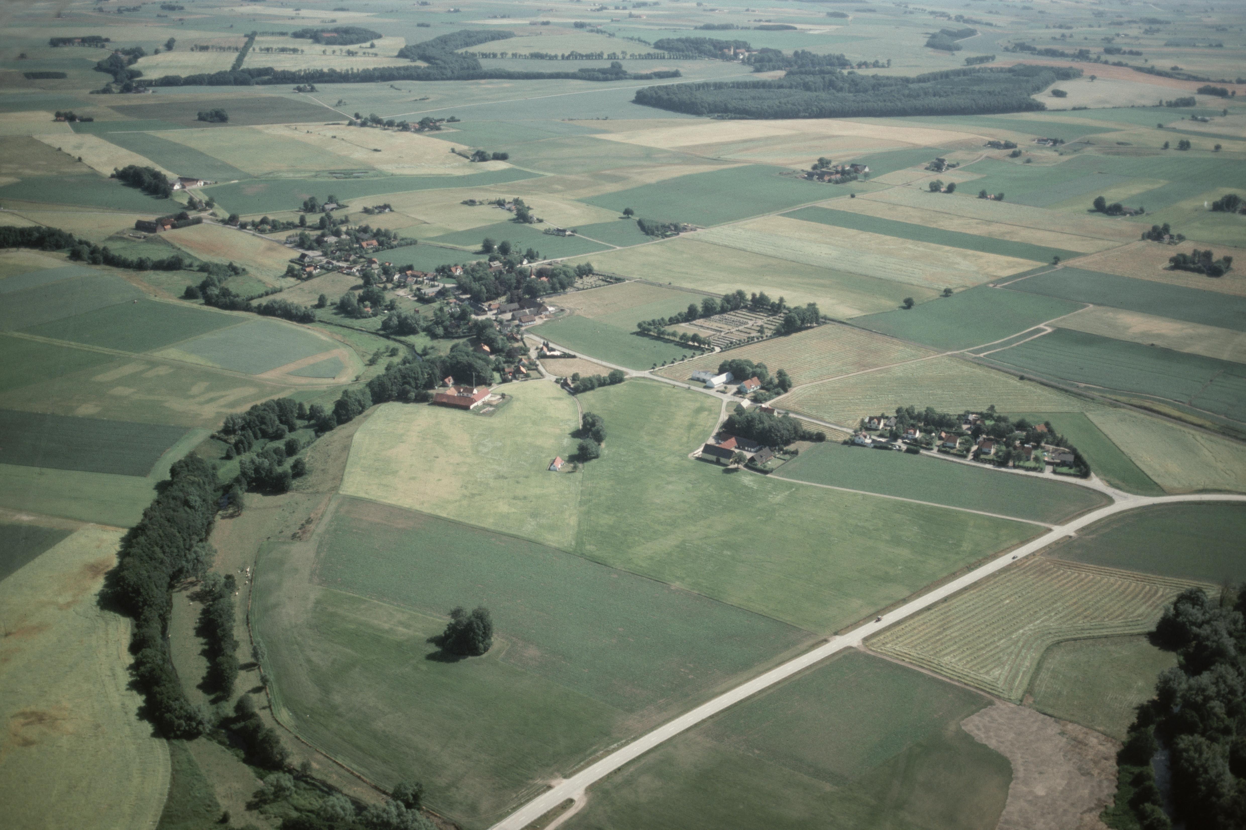 Beskrivning: Nybroån. Stora Köpinge kyrka till vänster om bildens mitt. Bilden är tagen mot (väderstreck): N