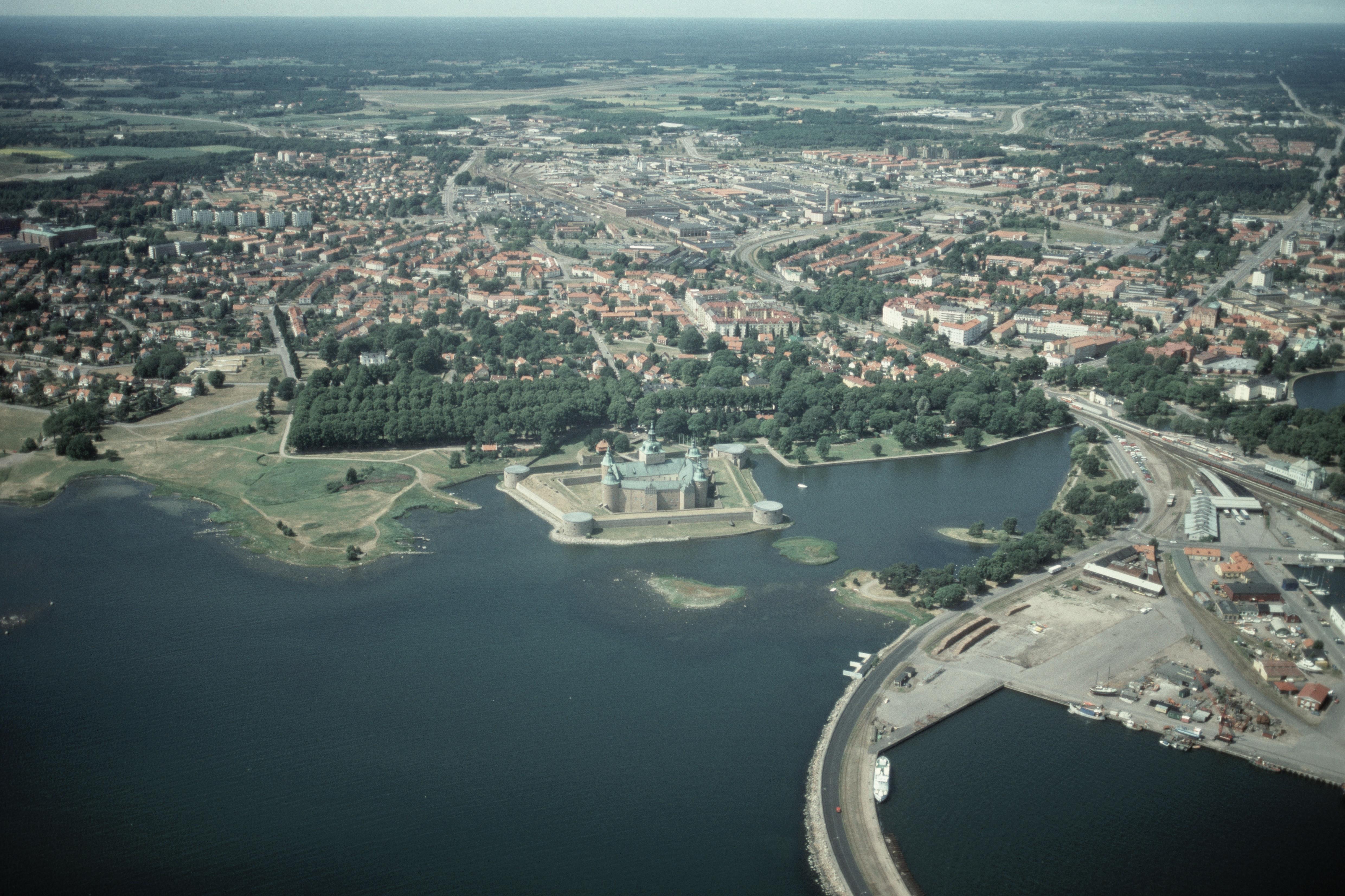 Beskrivning: Kalmar stad. Kalmar slott / borg RAÄnr Kalmar 53:1 vid bildens mitt. Bilden är tagen mot (väderstreck): NV