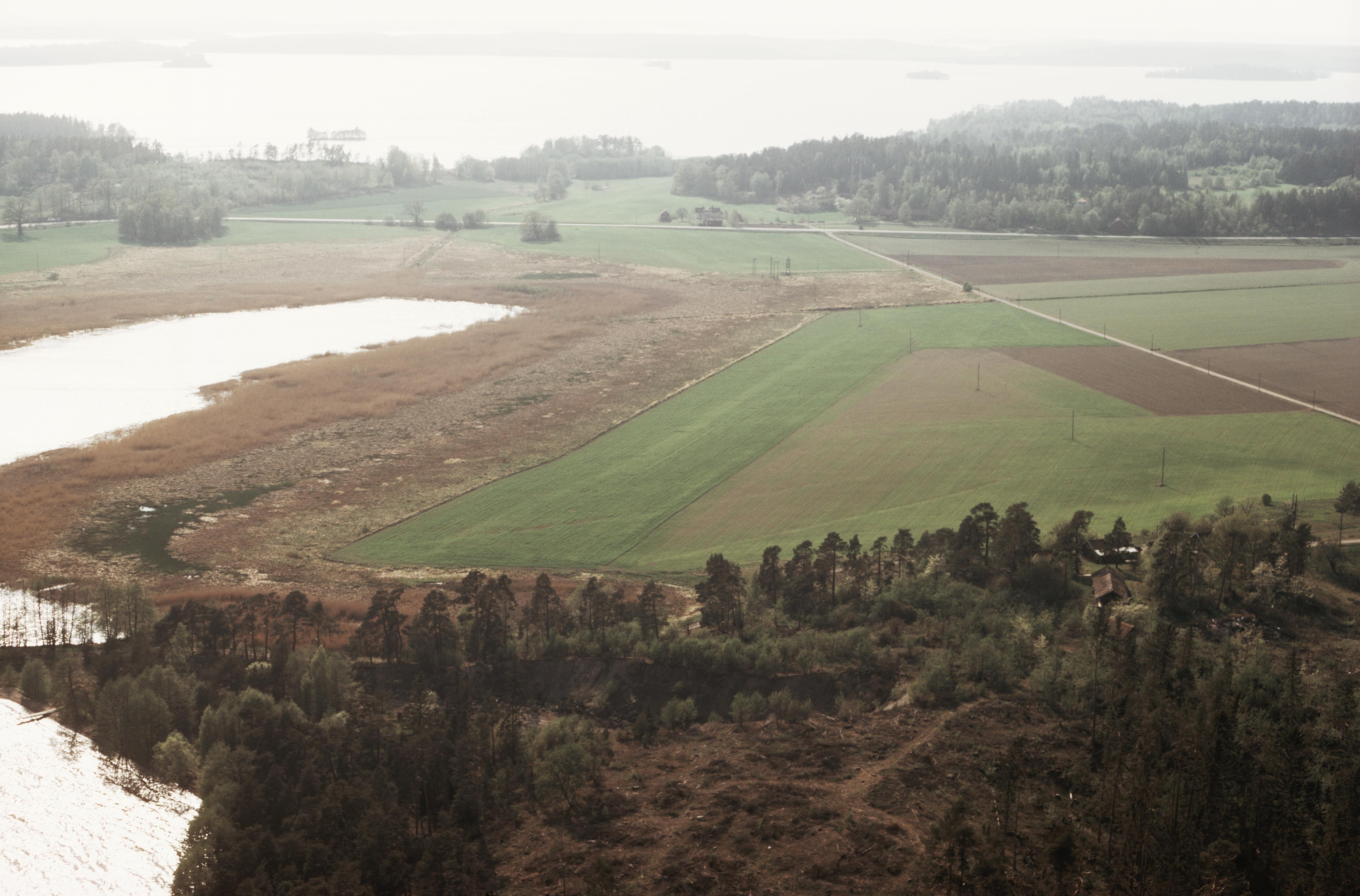 Beskrivning: Munsön i Mälaren, området Kärsön. Till vänster viken Fladen i fjärden Långtarmen i Mälaren. Fladen markerar gränsen mellan socken Ekerö (till vänster) och Munsö (till höger). Uppe till vänster husgrund RAÄnr Ekerö 205 vid Berlinsviken. Uppe till höger Kärsösund. Bilden är tagen från (väderstreck): VSV