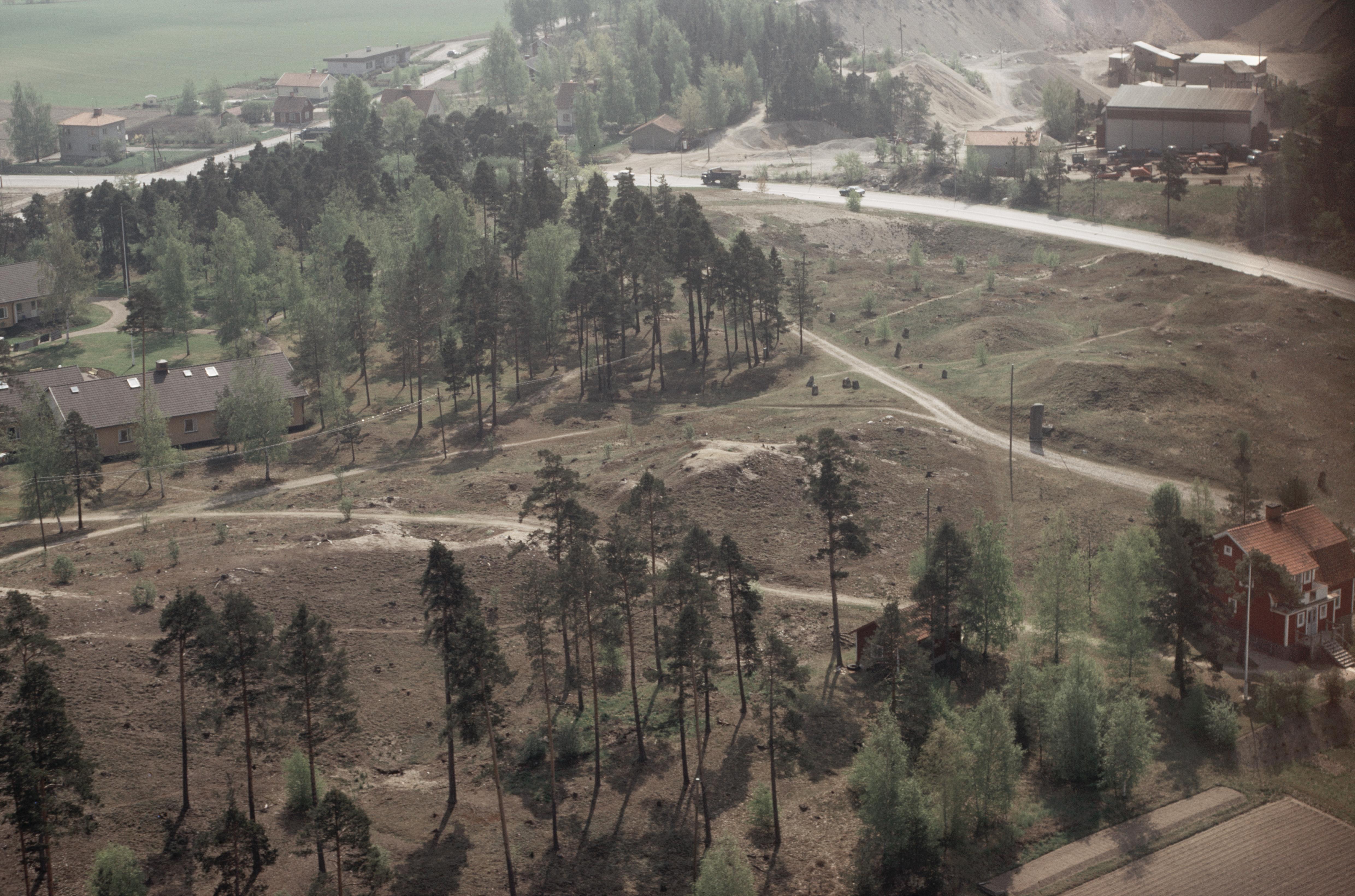 Beskrivning: Kjulaås. Gravfält Kungshållet RAÄnr Kjula 11:1. Till höger om bildens mitt runsten Kjula 11:2 (Sö106 Kjula). Bilden är tagen från (väderstreck): NV