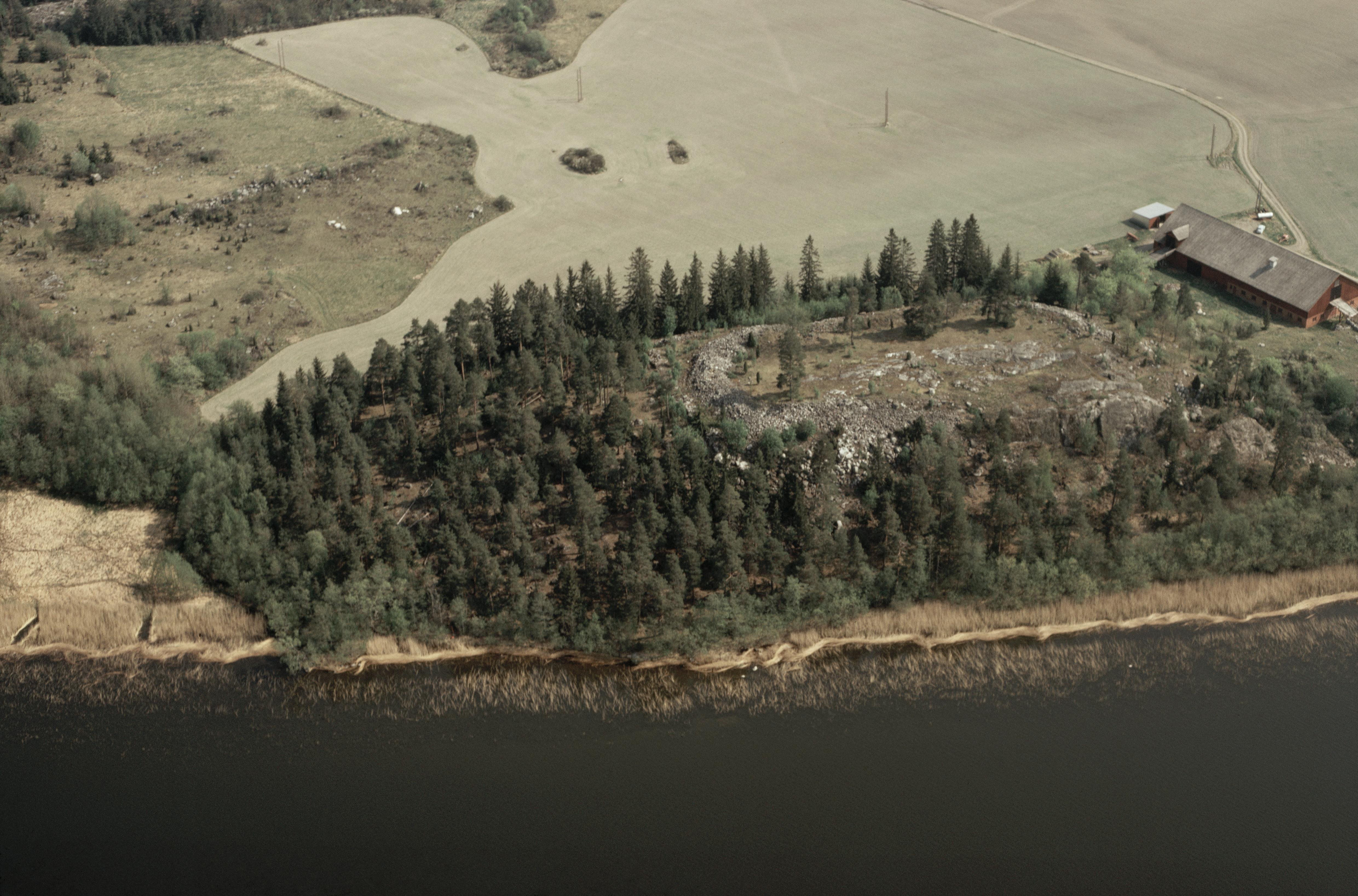 Beskrivning: Strängnäsfjärden i sjön Mälaren. Fornborg Stenby skans / Stenby borg RAÄnr Aspö 140:1. Bilden är tagen mot (väderstreck): NO