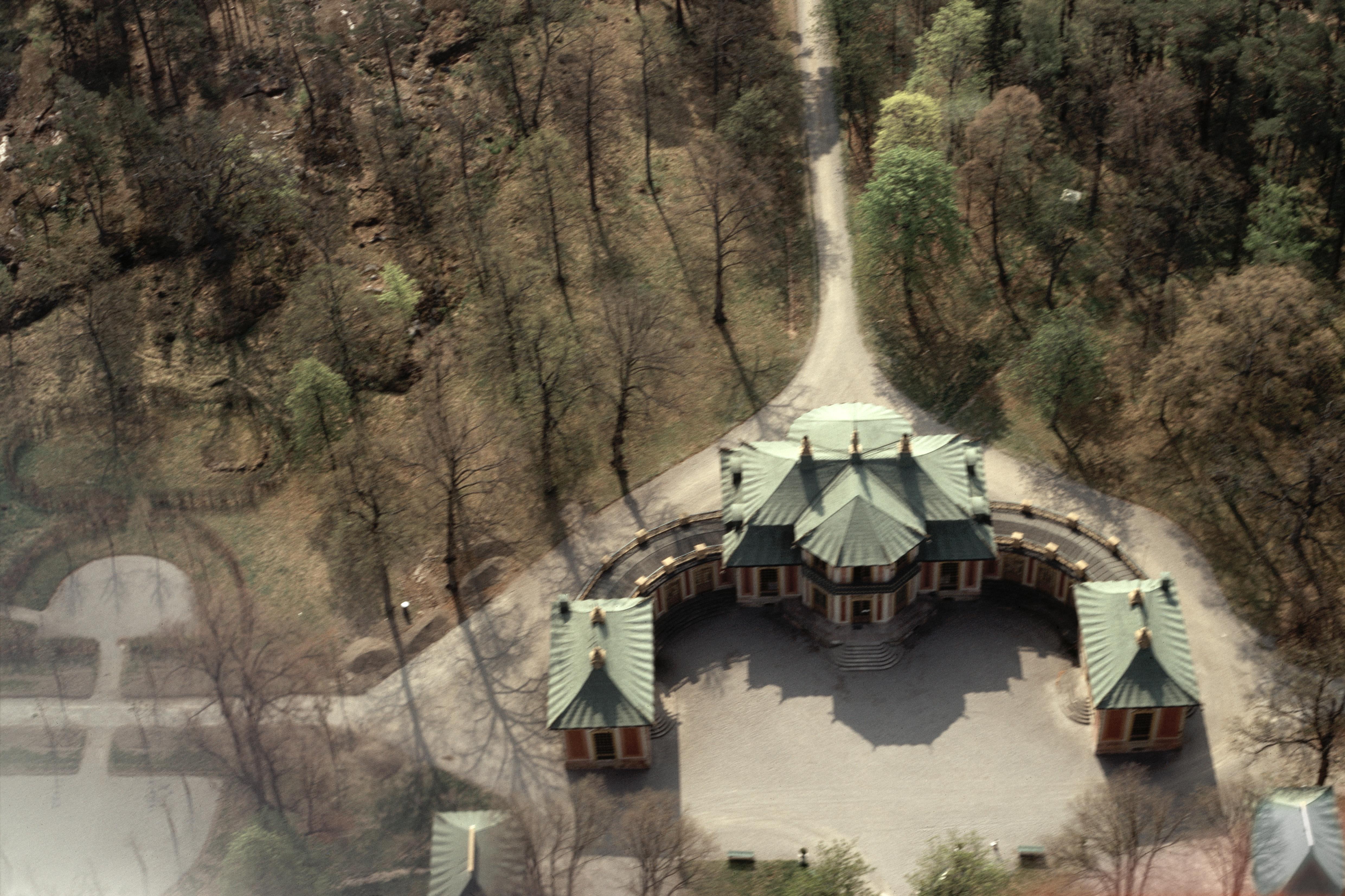 Beskrivning: Kina slott RAÄnr Lovö 92:8 vid Drottningholms slott statligt byggnadsminne RAÄnr Lovö 92:1-9 på Lovön. (Obs: Bilden är något oskarp.) Bilden är tagen mot (väderstreck): SO