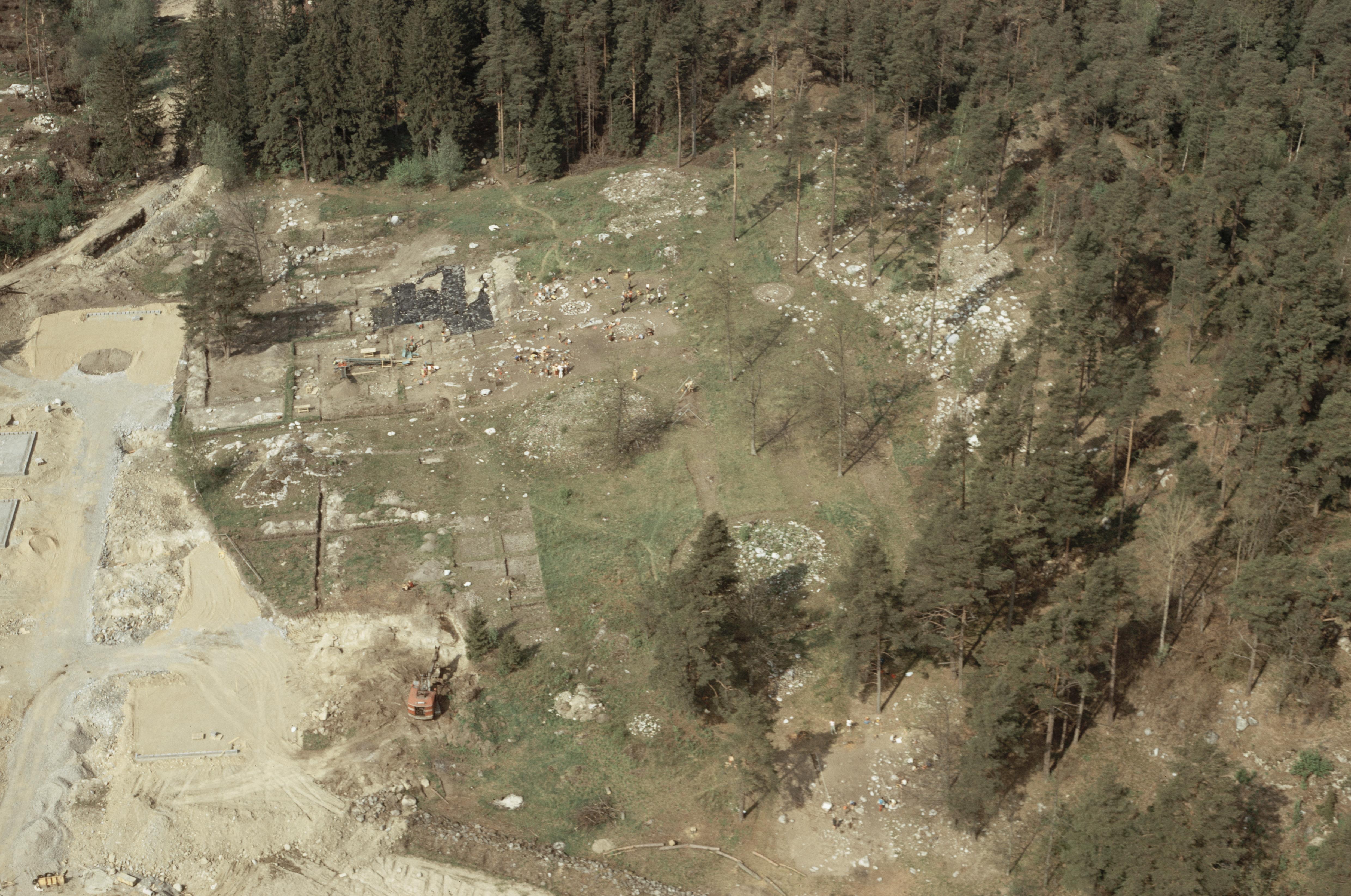 Beskrivning: Lugnet i förortsområdet Hallunda. Arkeologisk undersökning av grav- och boplats med hällristningar RAÄnr Botkyrka 13:1 m.fl. Bilden är tagen mot (väderstreck): V