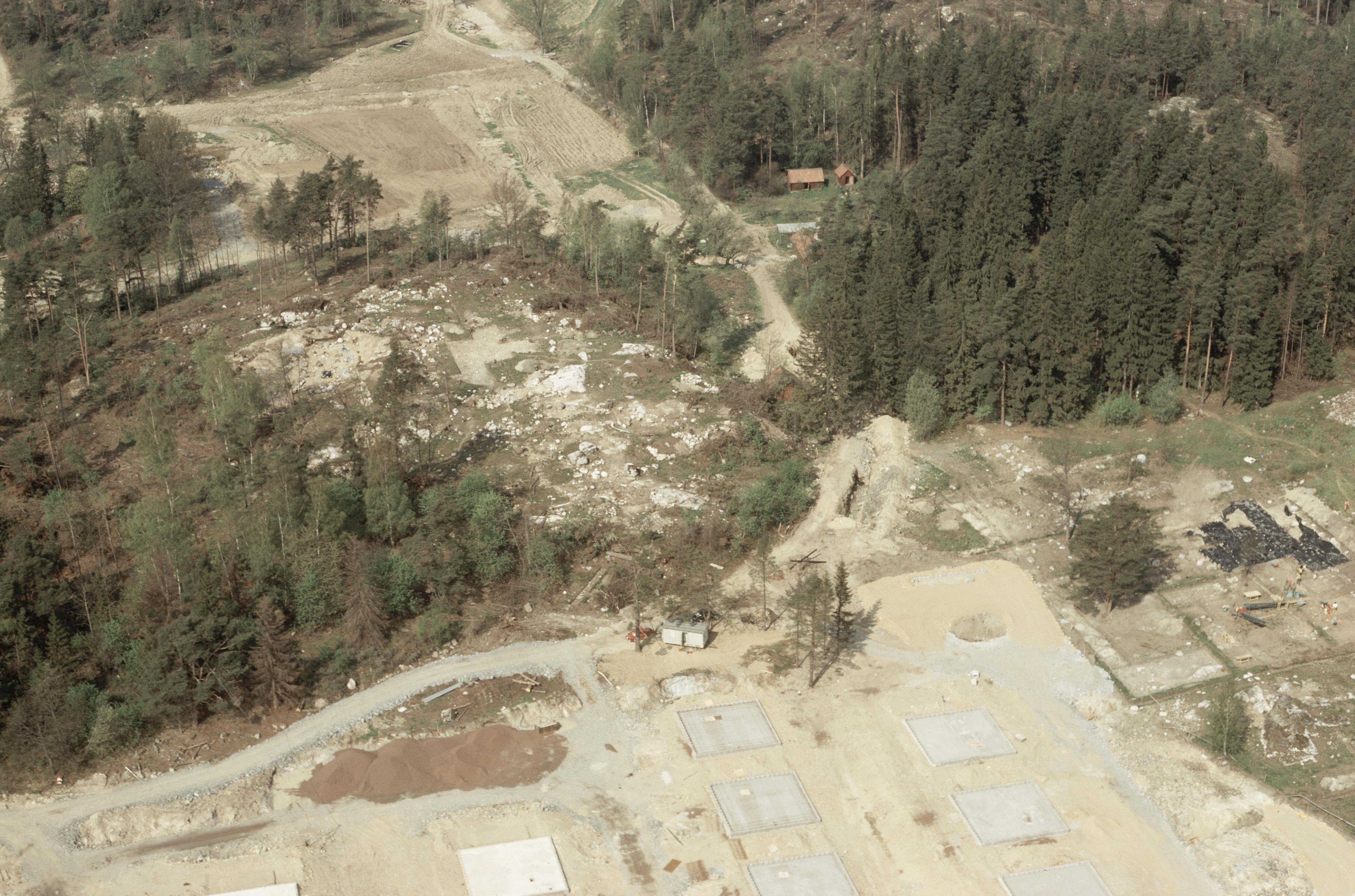 Beskrivning: Lugnet i förortsområdet Hallunda. Arkeologisk undersökning av grav- och boplats RAÄnr Botkyrka 13:1 med hällristningar och ugnar för bronsgjutning. Bilden är tagen mot (väderstreck): VNV