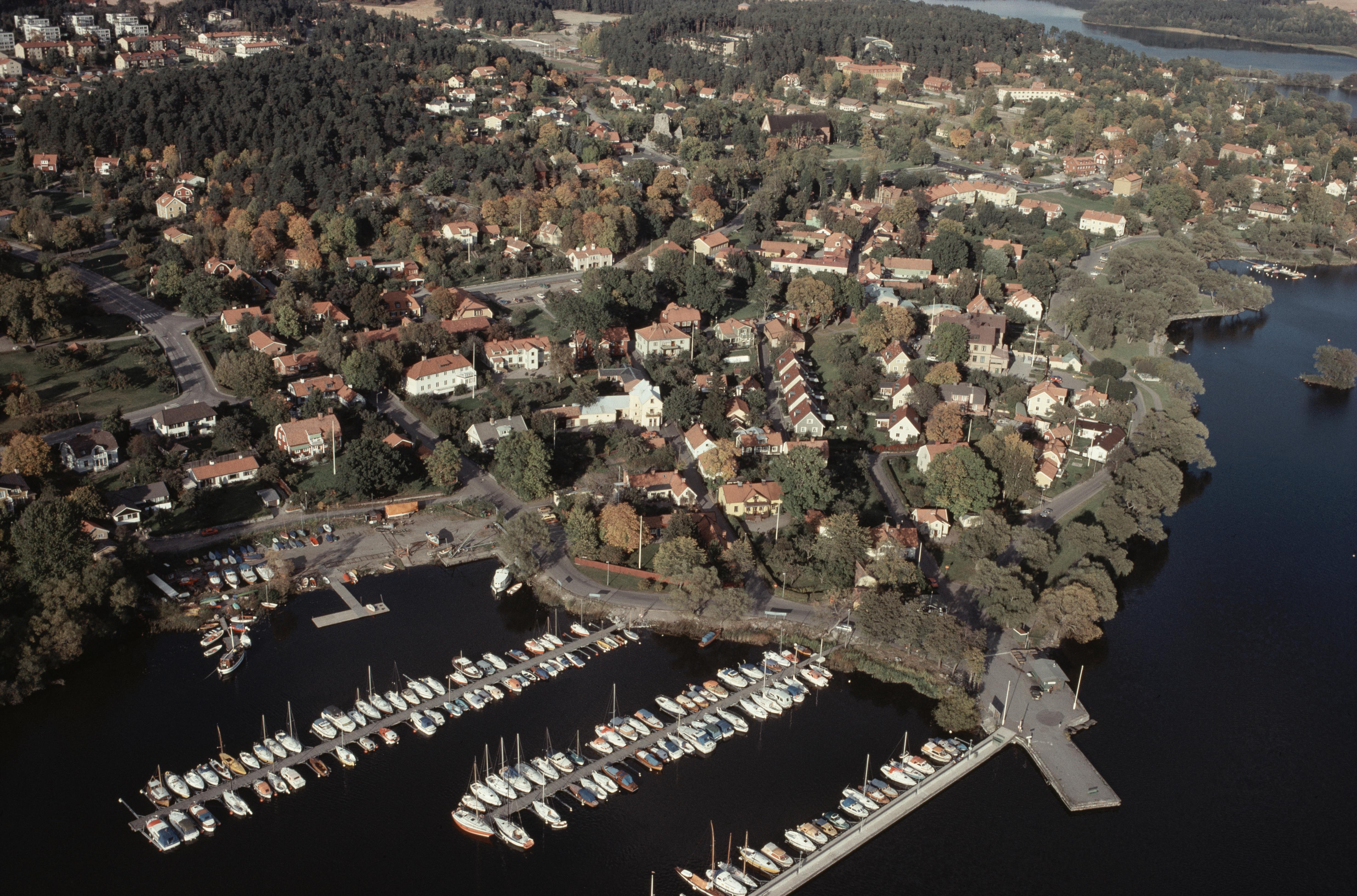 Beskrivning: Sigtuna stad vid Sigtunafjärden i Mälaren. Stadslager RAÄnr Sigtuna 195:1 m.fl. I bildens övre del Sankt Olofs kyrkoruin RAÄnr Sigtuna 28:1 och Mariakyrkan. Bilden är tagen mot (väderstreck): NO