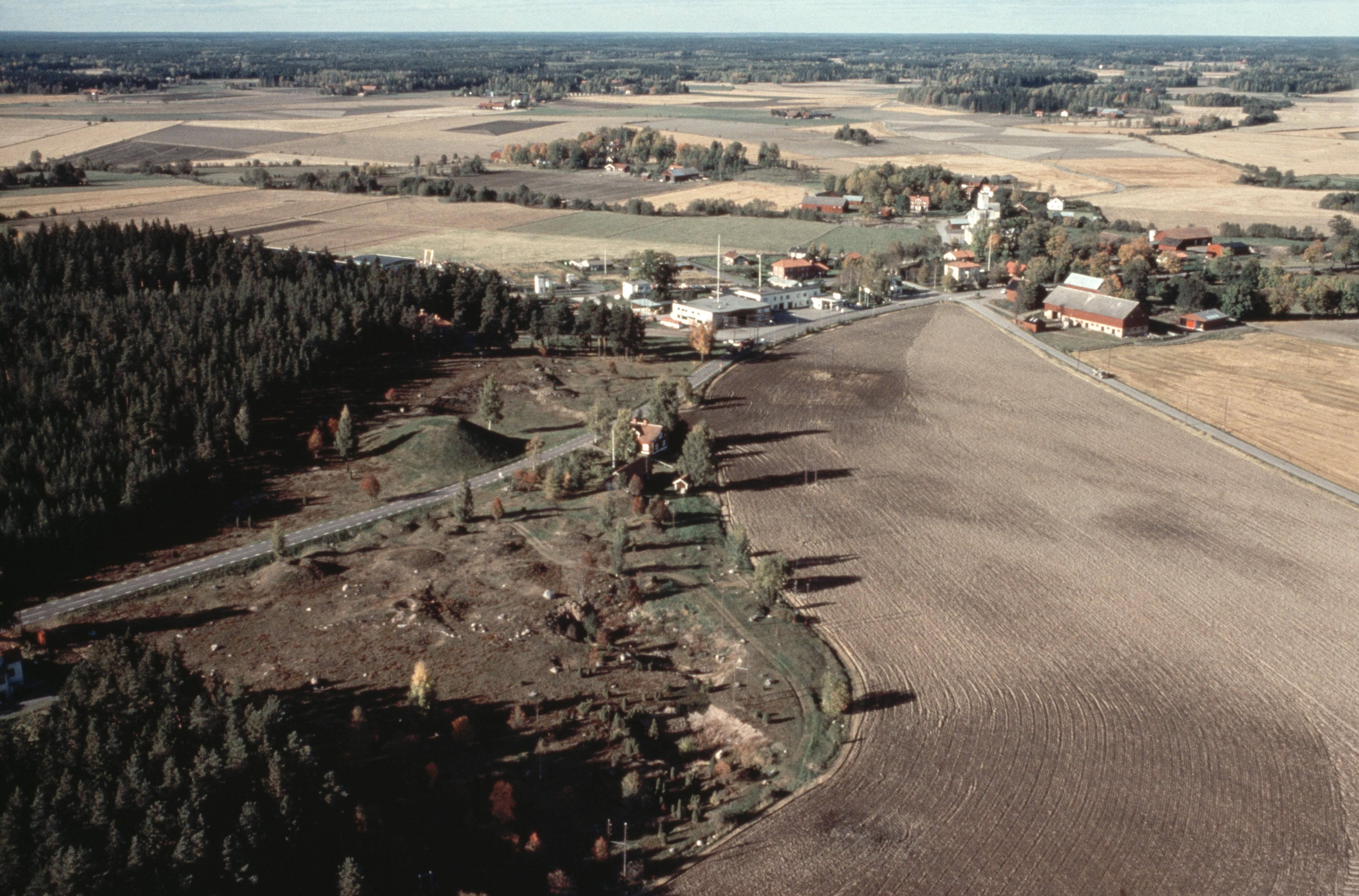 Beskrivning: Husby vid Tassbäcken. Till vänster om bildens mitt Ottarshögen RAÄnr Vendel 1:1 vid gravfälten RAÄnr Vendel 2:1 och 3:1. Bilden är tagen mot (väderstreck): NV