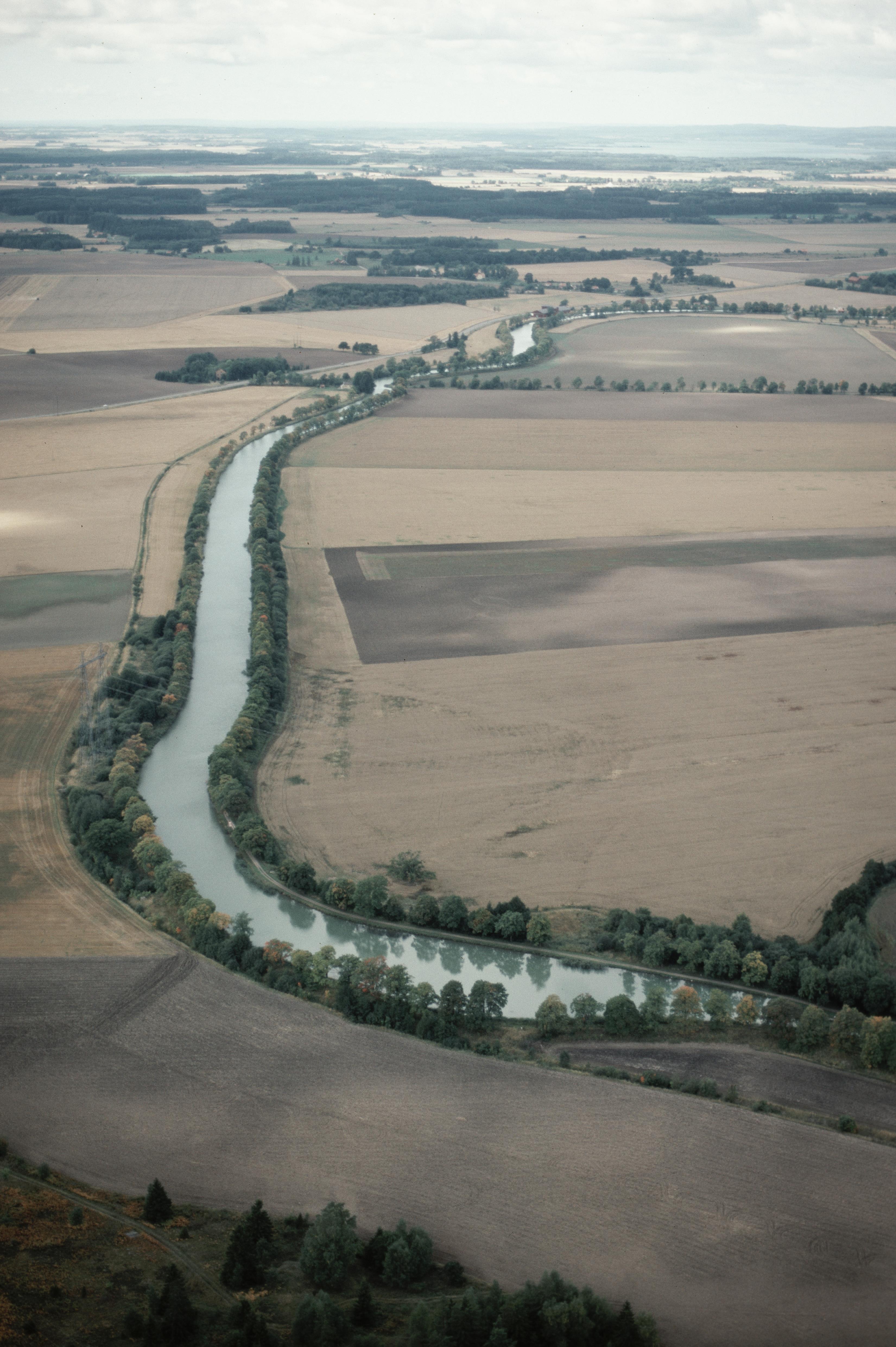 Beskrivning: Göta kanal söder om Ljungs by. I bildens nedre del kanalmärke RAÄnr Ljung 88:1. Bilden är tagen mot (väderstreck): VNV