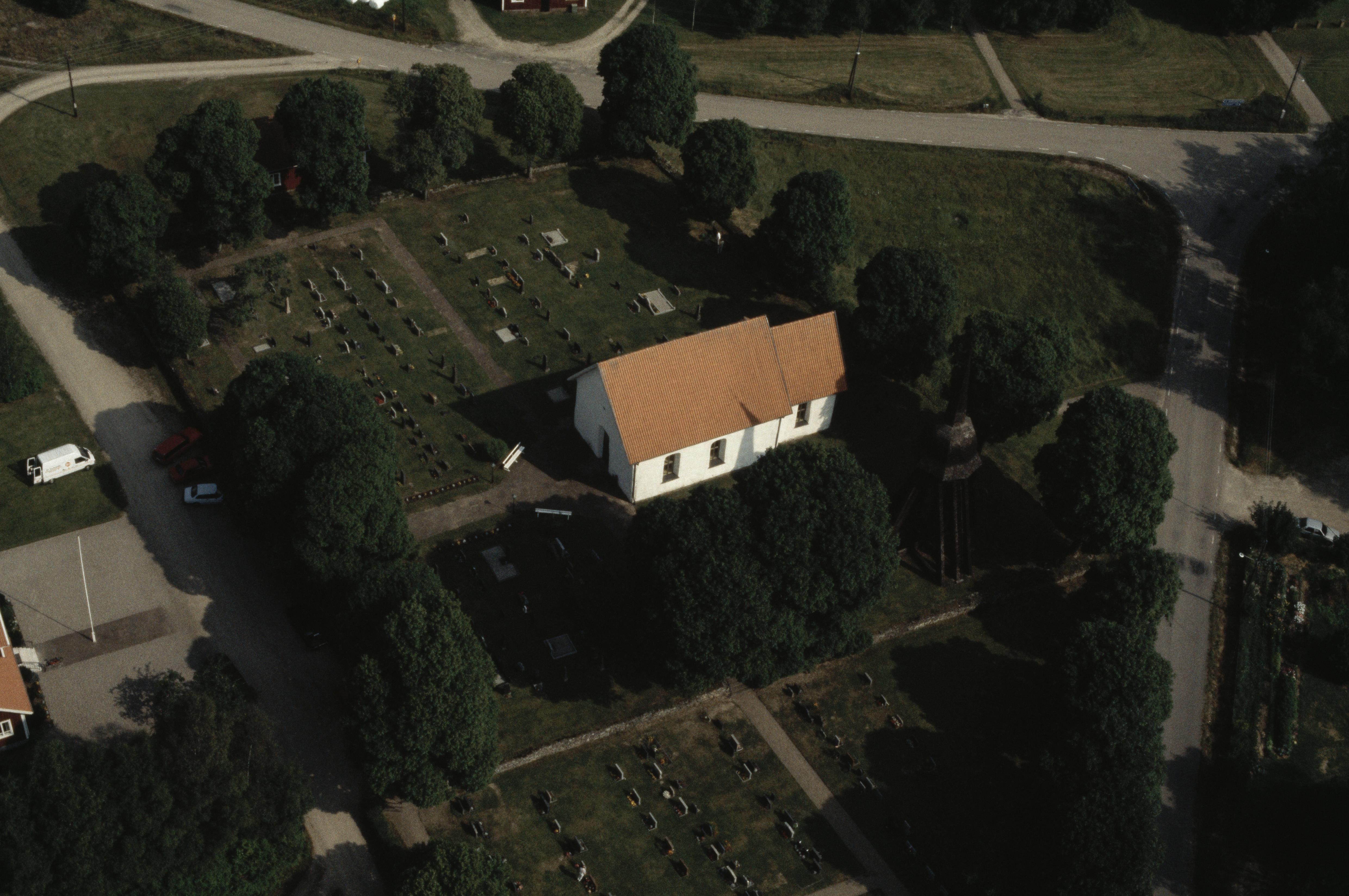 Beskrivning: Nöttja kyrka vid Bolmån. Vid kyrkan bytomt RAÄnr Nöttja 42:5. Bilden är tagen mot (väderstreck): NO