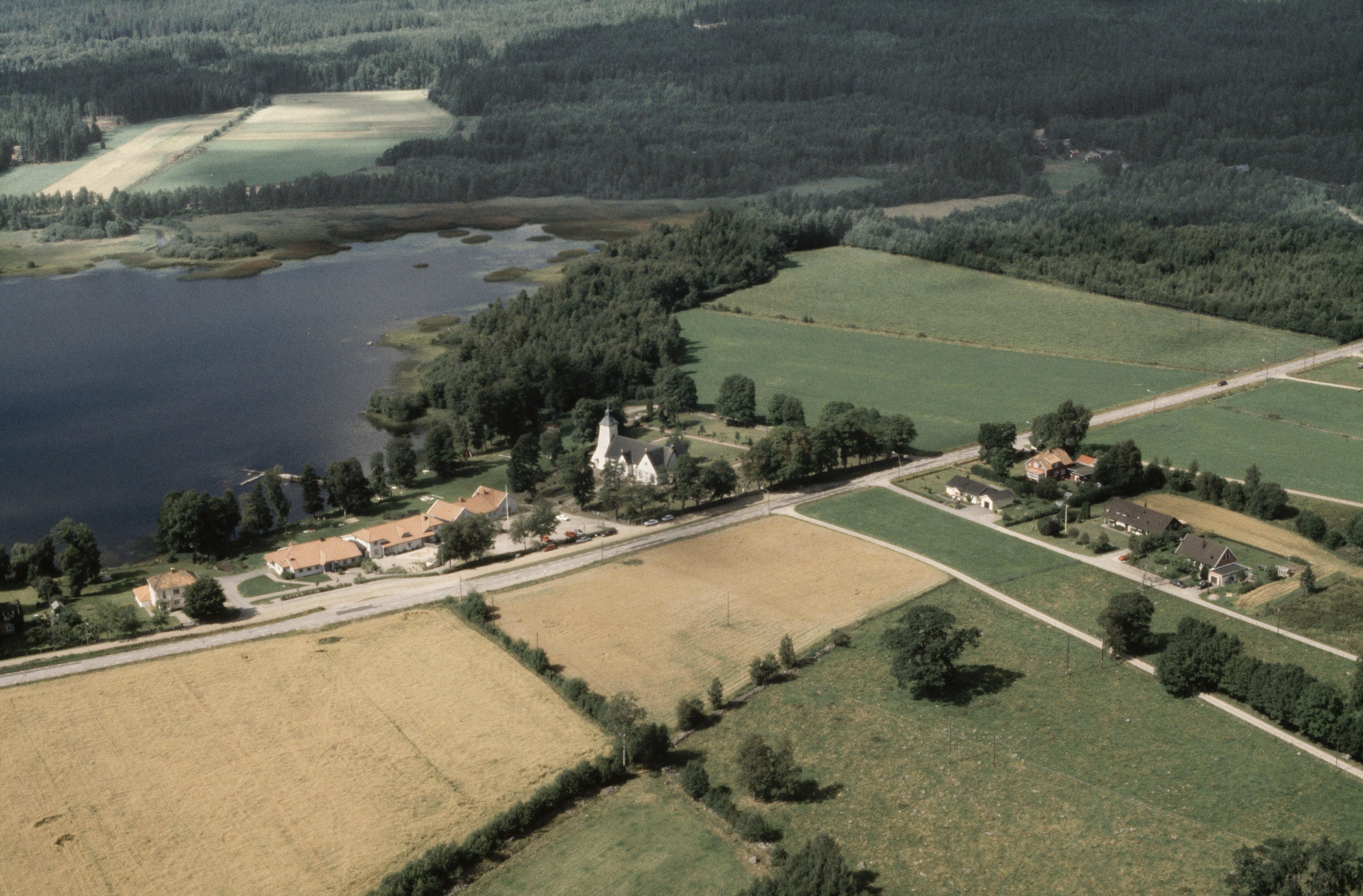 Beskrivning: Tävelsås kyrka. Bilden är tagen mot (väderstreck): NV