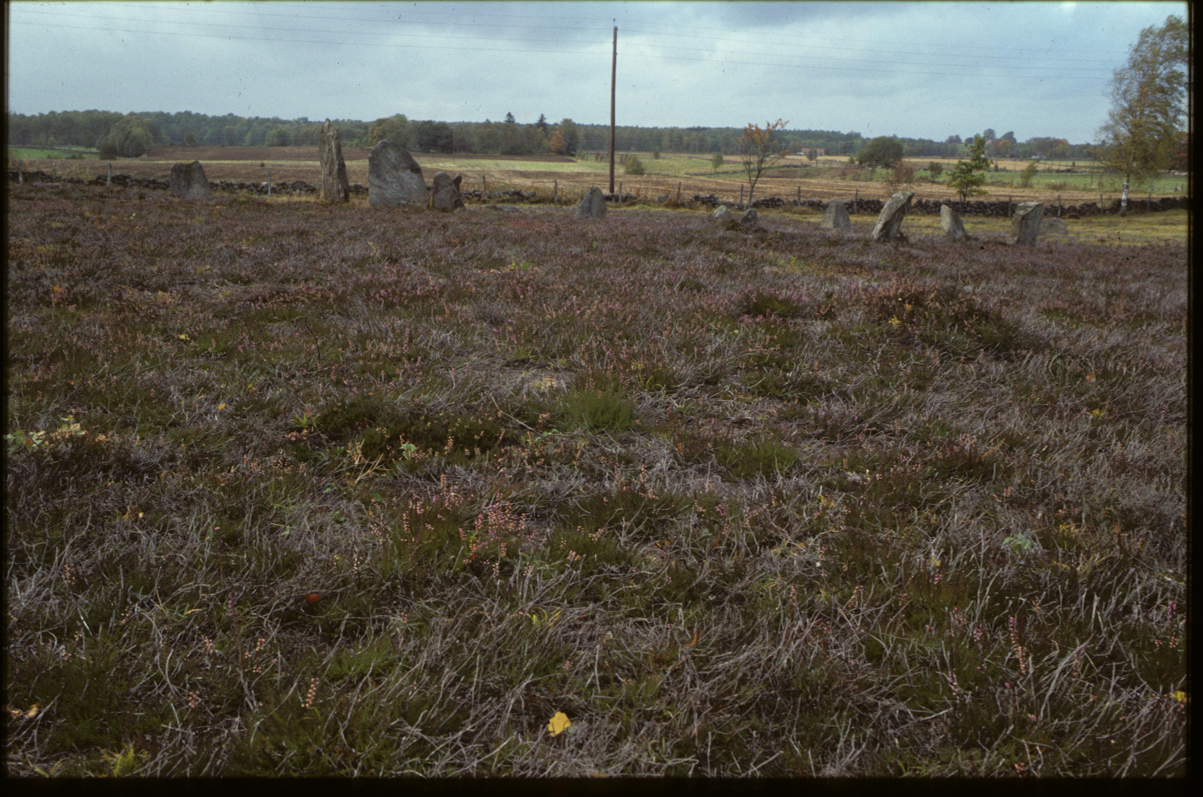 Norra Mellby 1:1. Gravfält, 250x150 m (SV-NÖ), bestående av ca 200 fornlämningar. Dessa utgöres av 15 skeppssättningar, 2 rektangulära stenkretsar och ca 183 resta stenar.