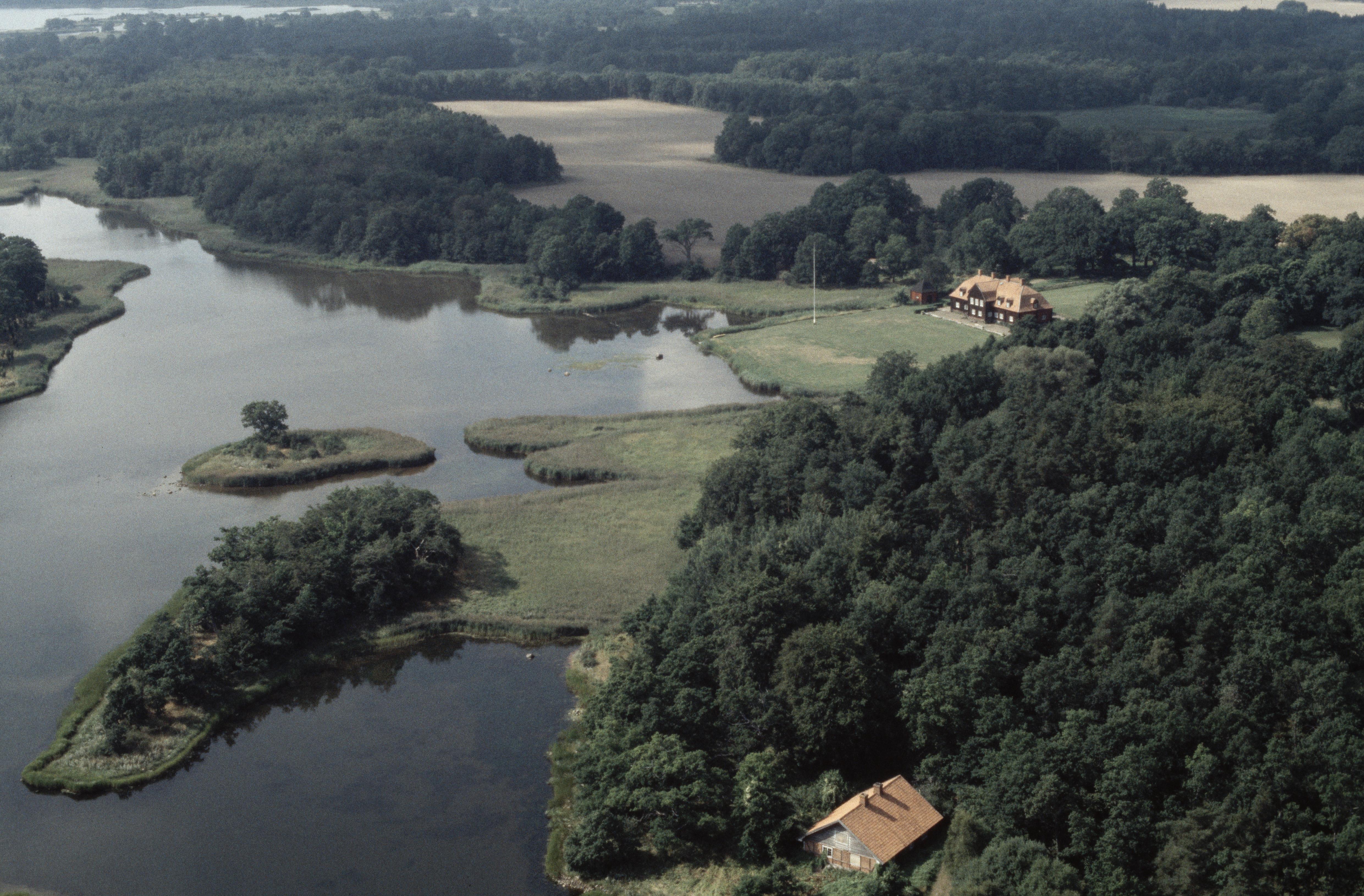 Beskrivning: Uppe till höger mangårdsbyggnaden Näset (sydost om vid Värnanäs herrgård) vid Halltorpsåns utlopp i Värnanäs skärgård, Kalmarsund. Bilden är tagen mot (väderstreck): SV