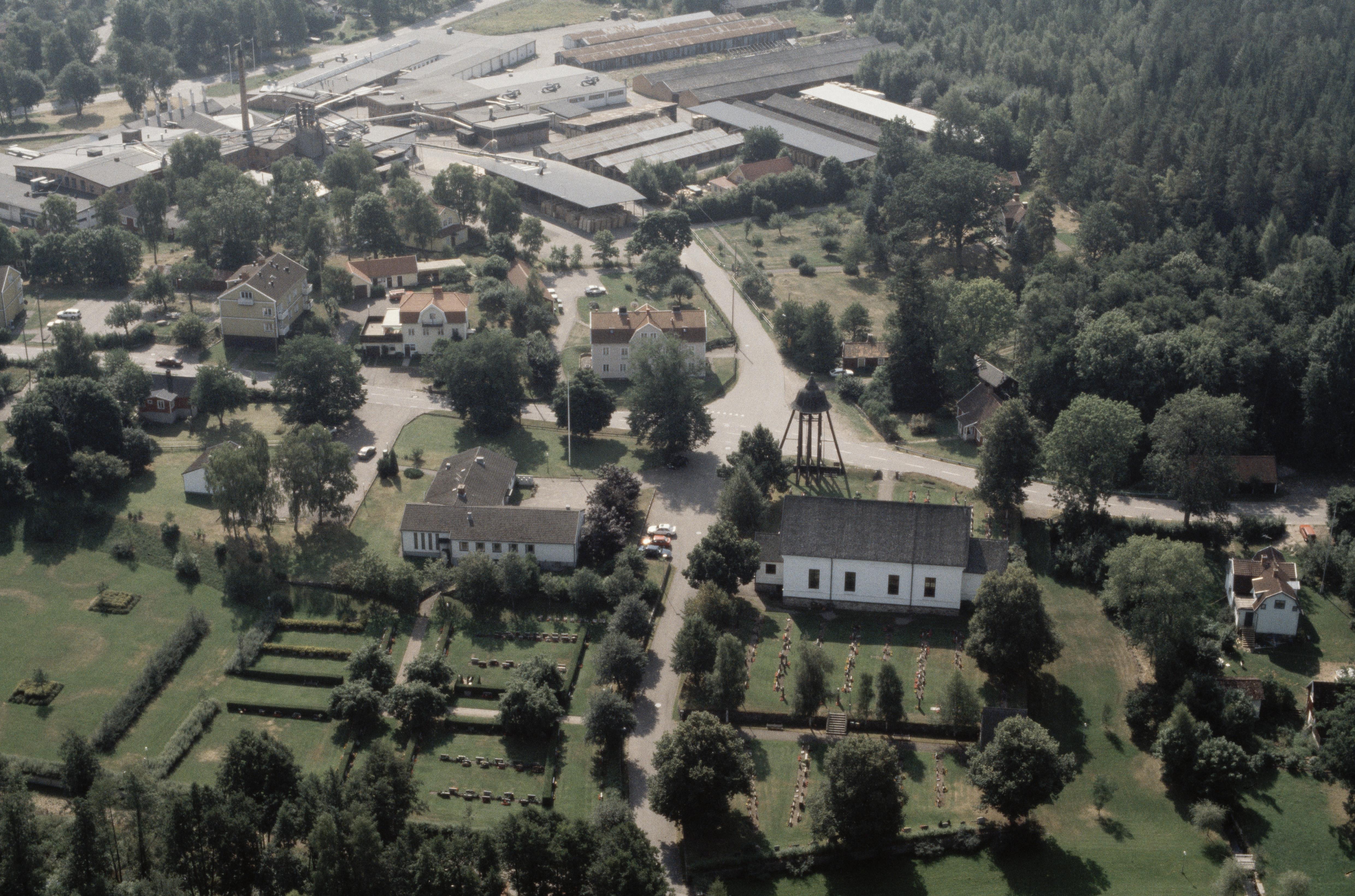 Beskrivning: Karlslunda bruk. Karlslunda kyrka. Bilden är tagen mot (väderstreck): S