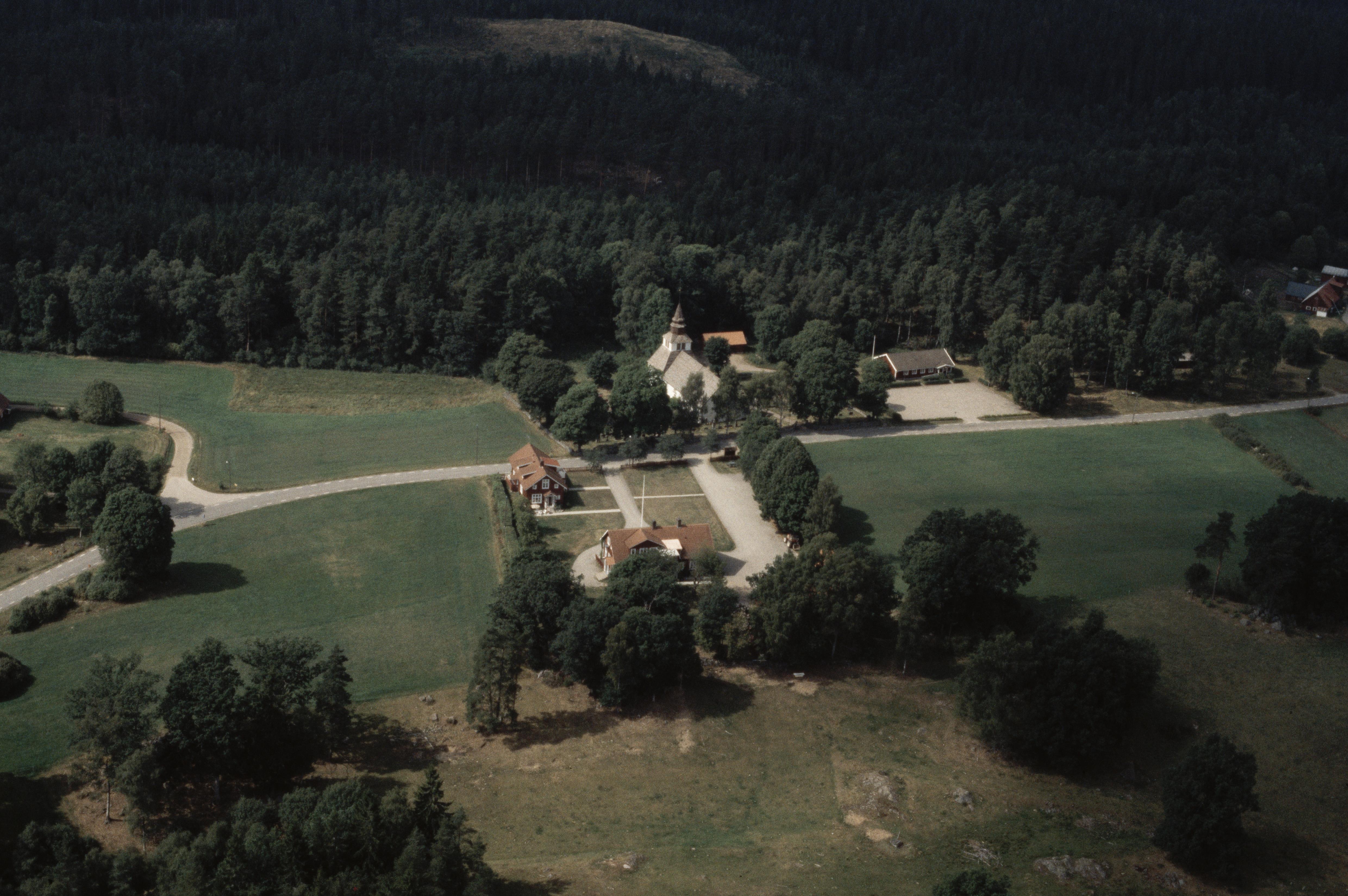 Beskrivning: Femsjö kyrka och kyrkby. Bilden är tagen mot (väderstreck): VNV