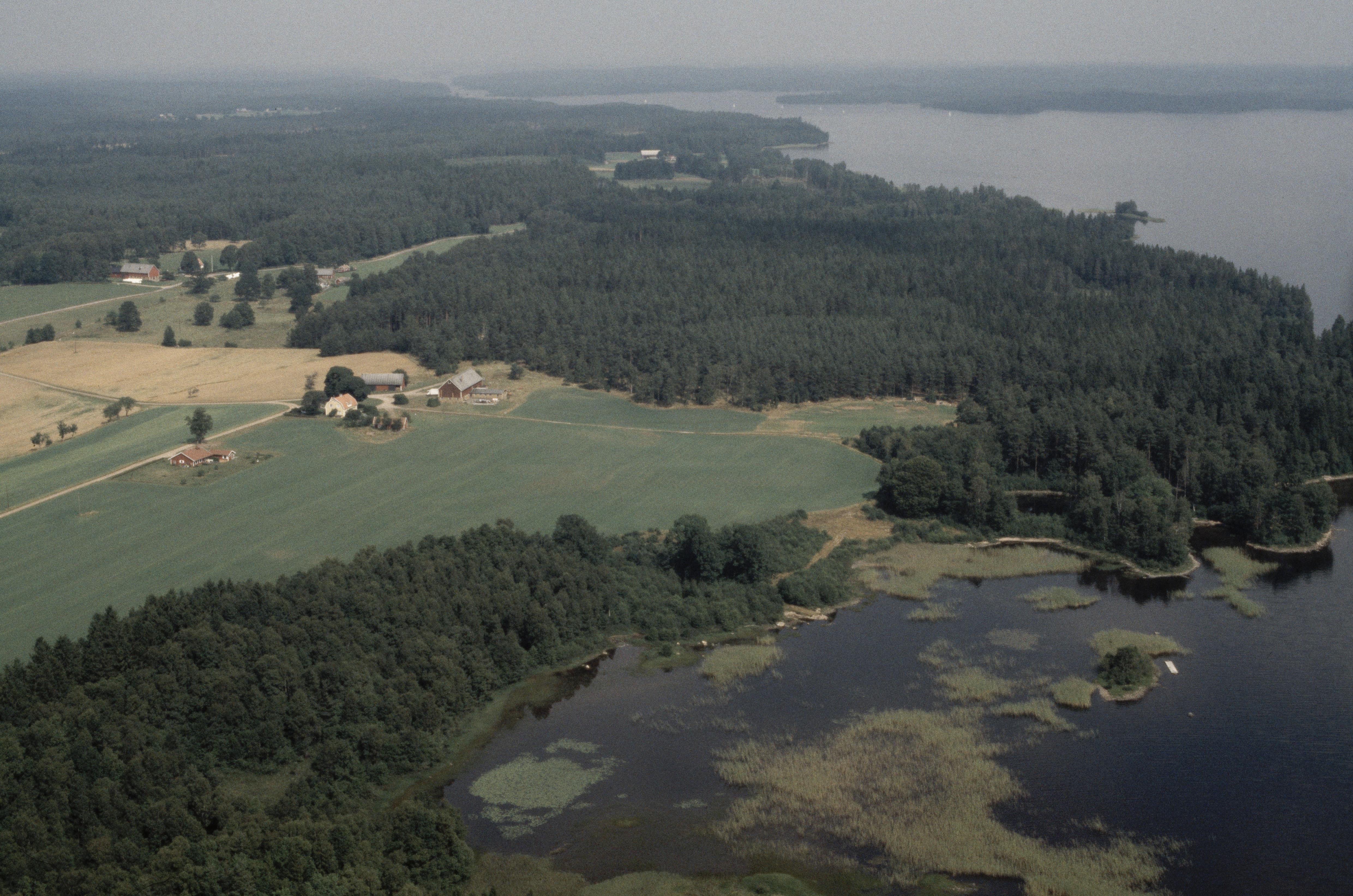Beskrivning: Södra delen av ön Bolmsö i sjön Bolmen. Gravfält RAÄnr Bolsmö 36:1 och bytomt Bolmsö 198:1 vid bildens mitt. Bilden är tagen mot (väderstreck): NNO