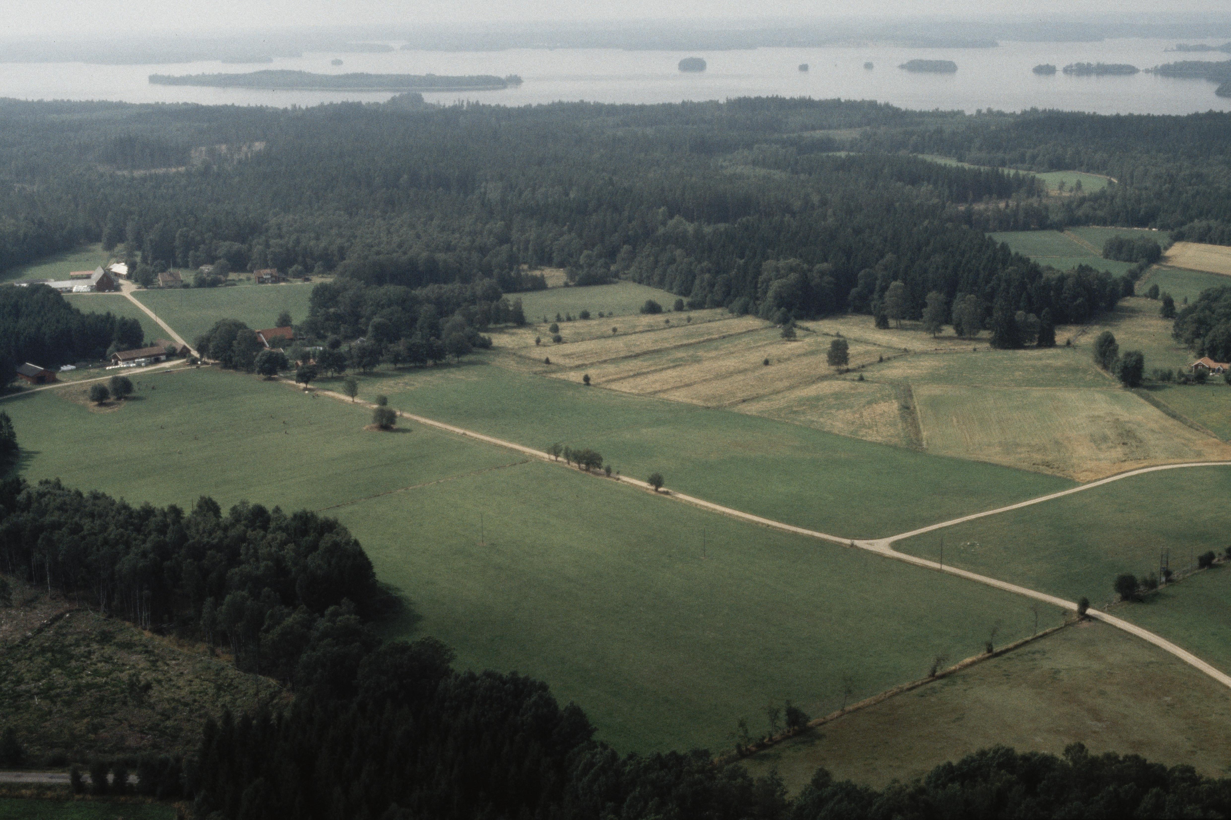 Beskrivning: Husaby. Till vänster över bildens mitt bytomt RAÄnr Bolmsö 153:1 och 154:1. Bilden är tagen mot (väderstreck): V