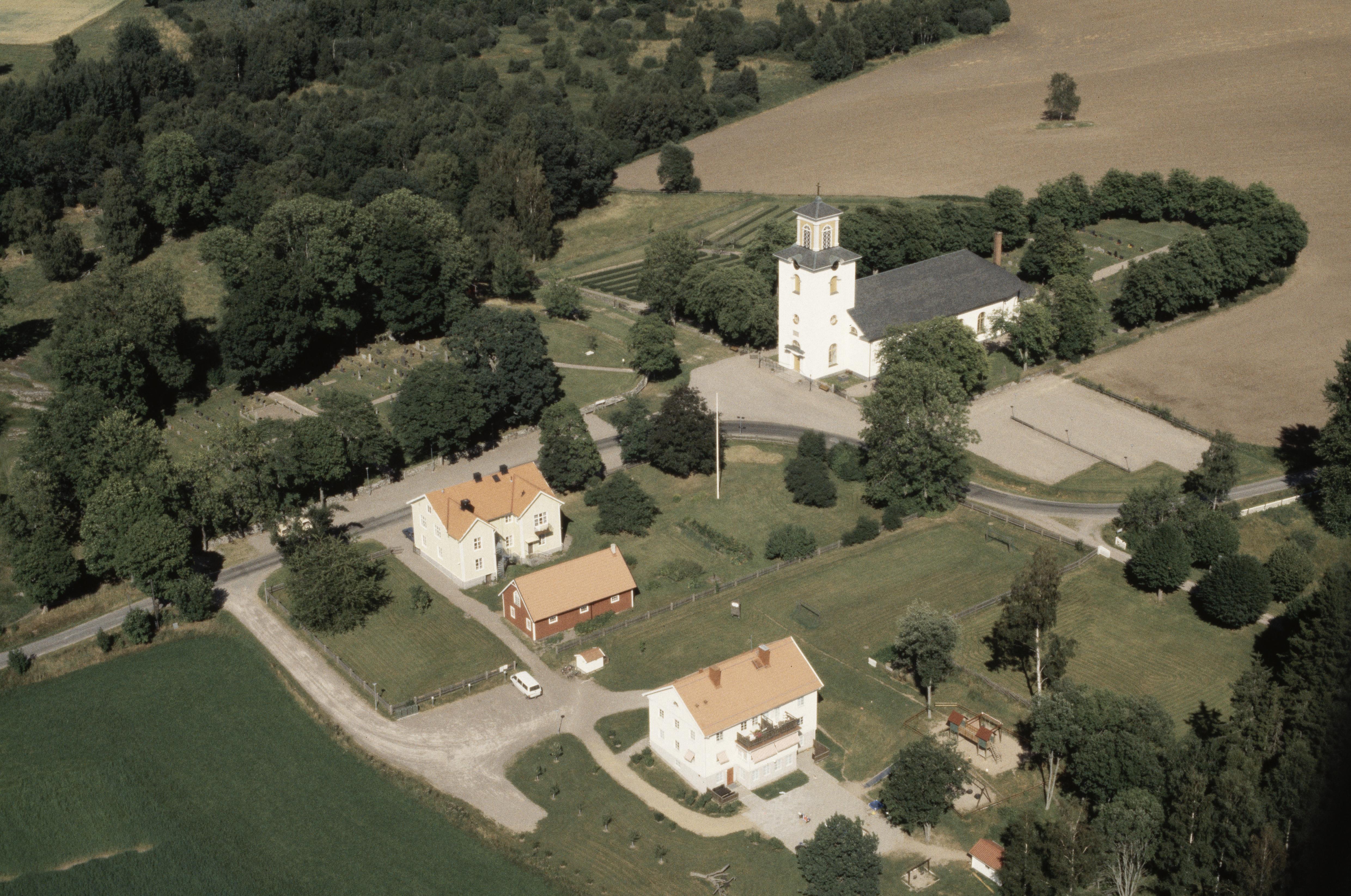 Beskrivning: Gårdsby kyrka. Vid kyrkan bytomt RAÄnr Gårdsby 53:2. Bilden är tagen mot (väderstreck): NO