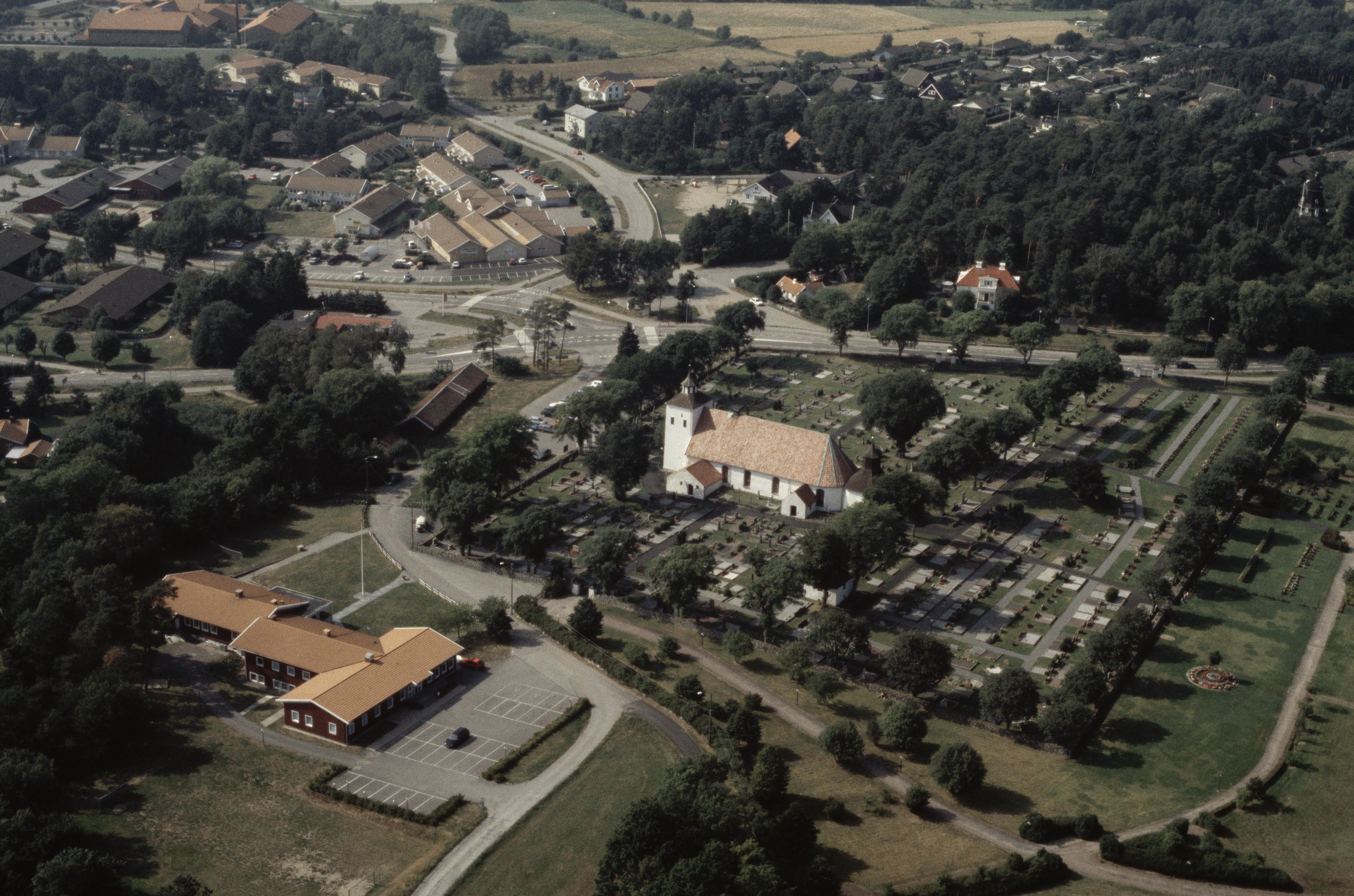 Beskrivning: Onsala kyrka och kyrkby. Bilden är tagen mot (väderstreck): NNV