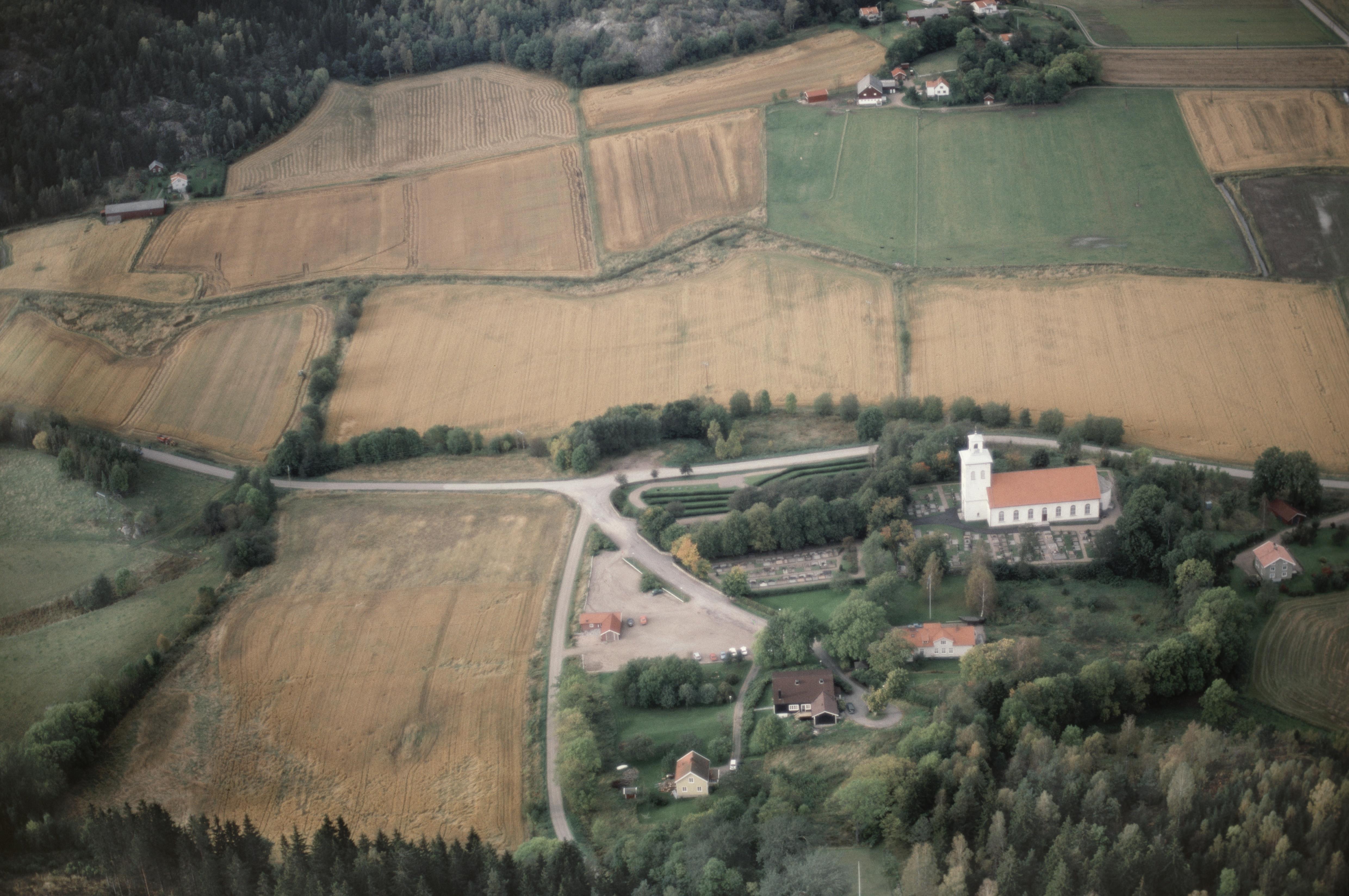 Beskrivning: Forshälla kyrka och kyrkby. Bilden är tagen mot (väderstreck): NNV