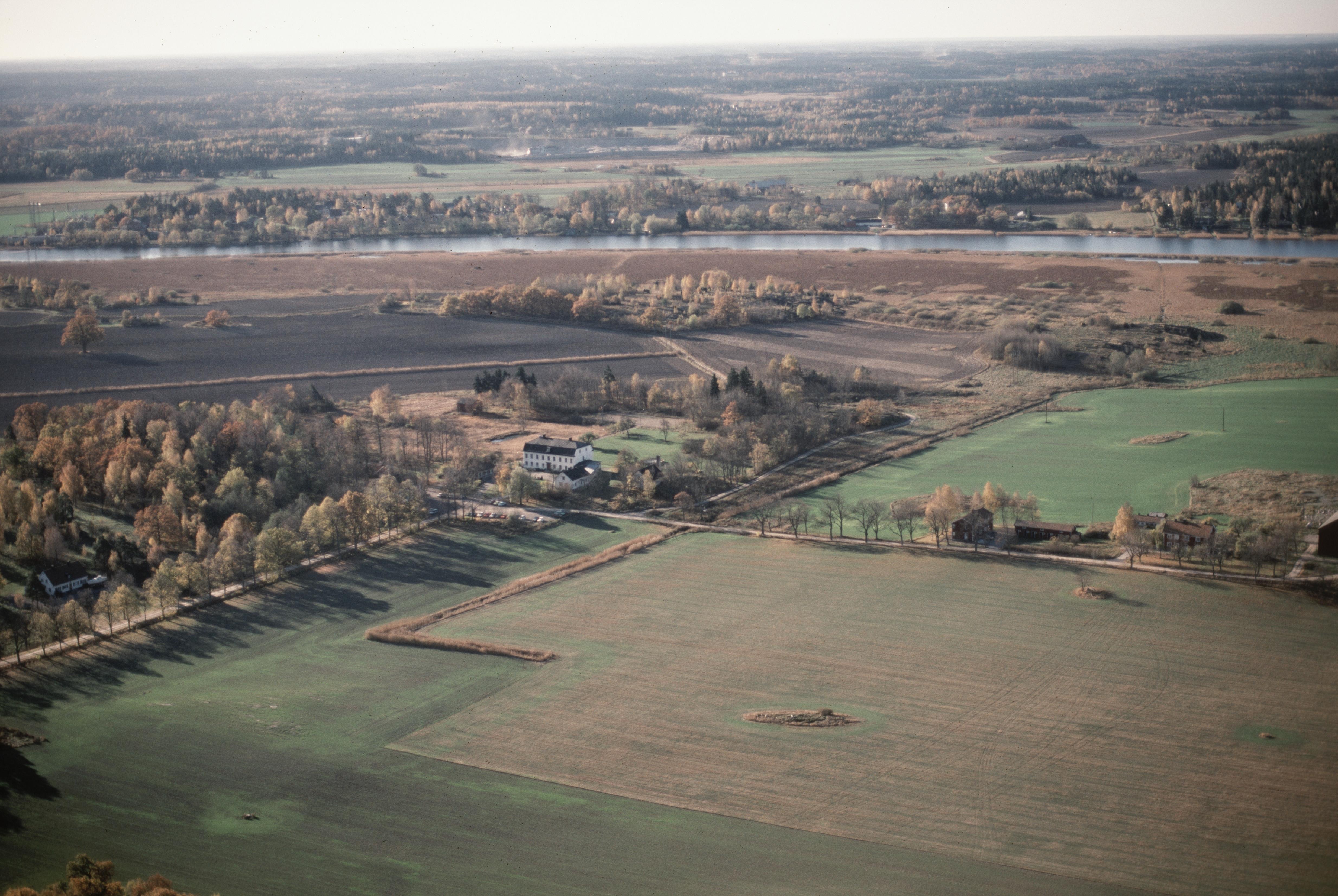 Beskrivning: (Tid. Östra Eneby socken). Hällristningar RAÄnr Östra Eneby 23:1, 29:1-3, 77:1-3, 156:1 m.fl. vid Ekenberg och Leonardsbergs herrgård. Motala ström i bildens övre del. Bilden är tagen mot (väderstreck): SSO