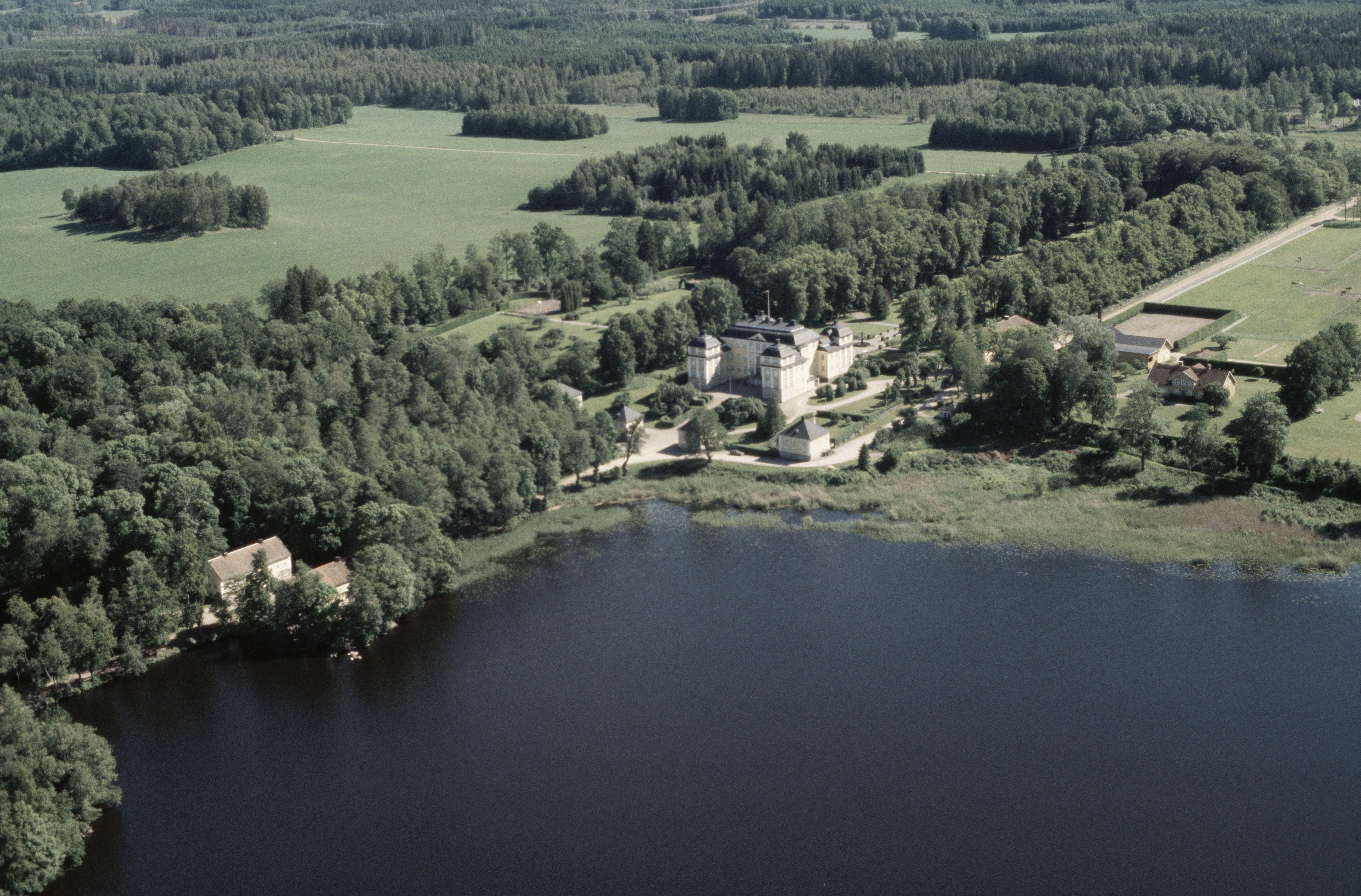 Beskrivning: Eriksbergs slott (skrivs även Ericsbergs slott), byggnadsminne RAÄnr Stora Malm 47:1, mellan Eriksbergssjön och Eriksbergsån. Bilden är tagen mot (väderstreck): SSO