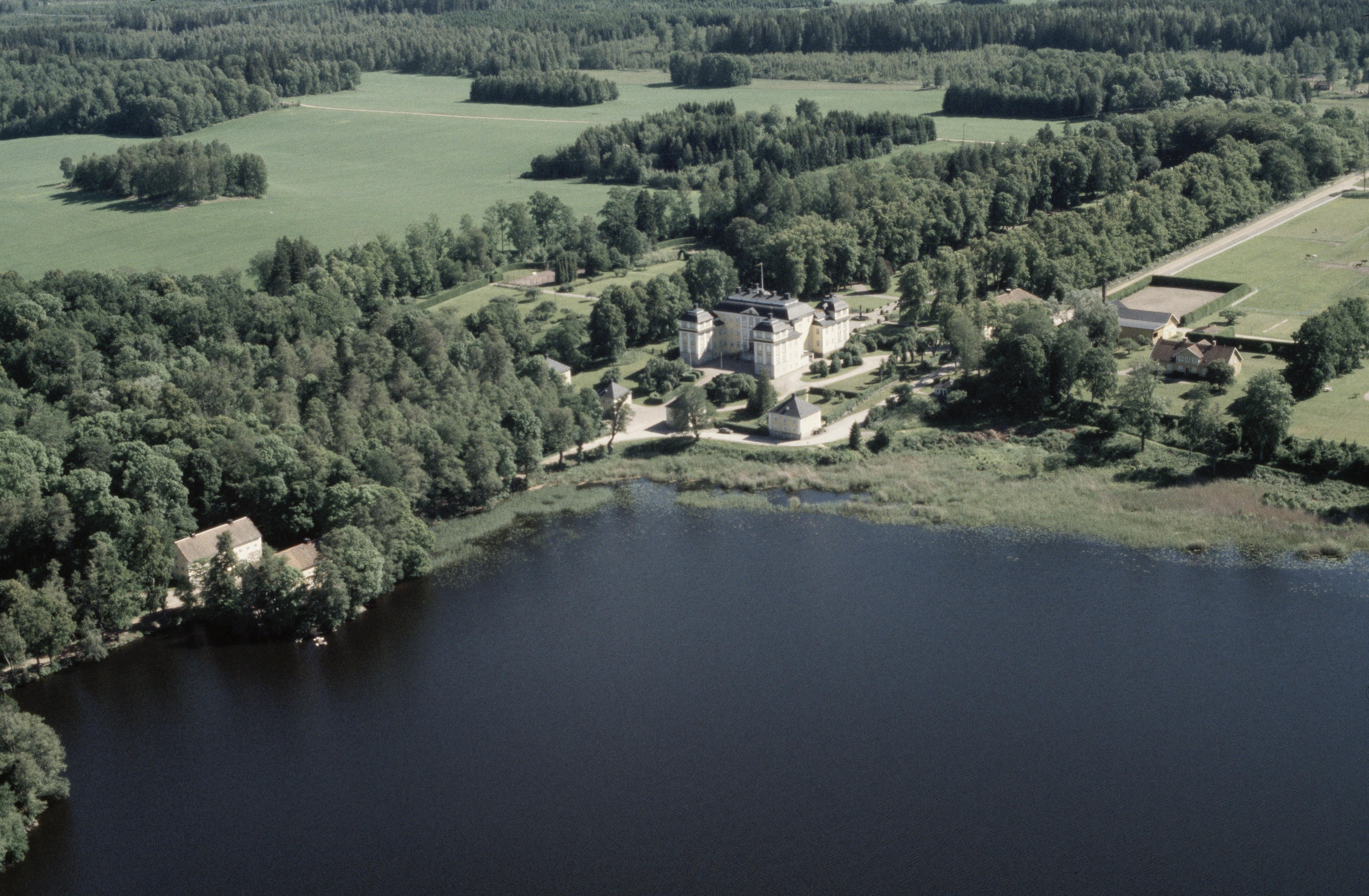 Beskrivning: Eriksbergs slott (skrivs även Ericsbergs slott), byggnadsminne RAÄnr Stora Malm 47:1, mellan Eriksbergssjön och Eriksbergsån. Bilden är tagen mot (väderstreck): SSO