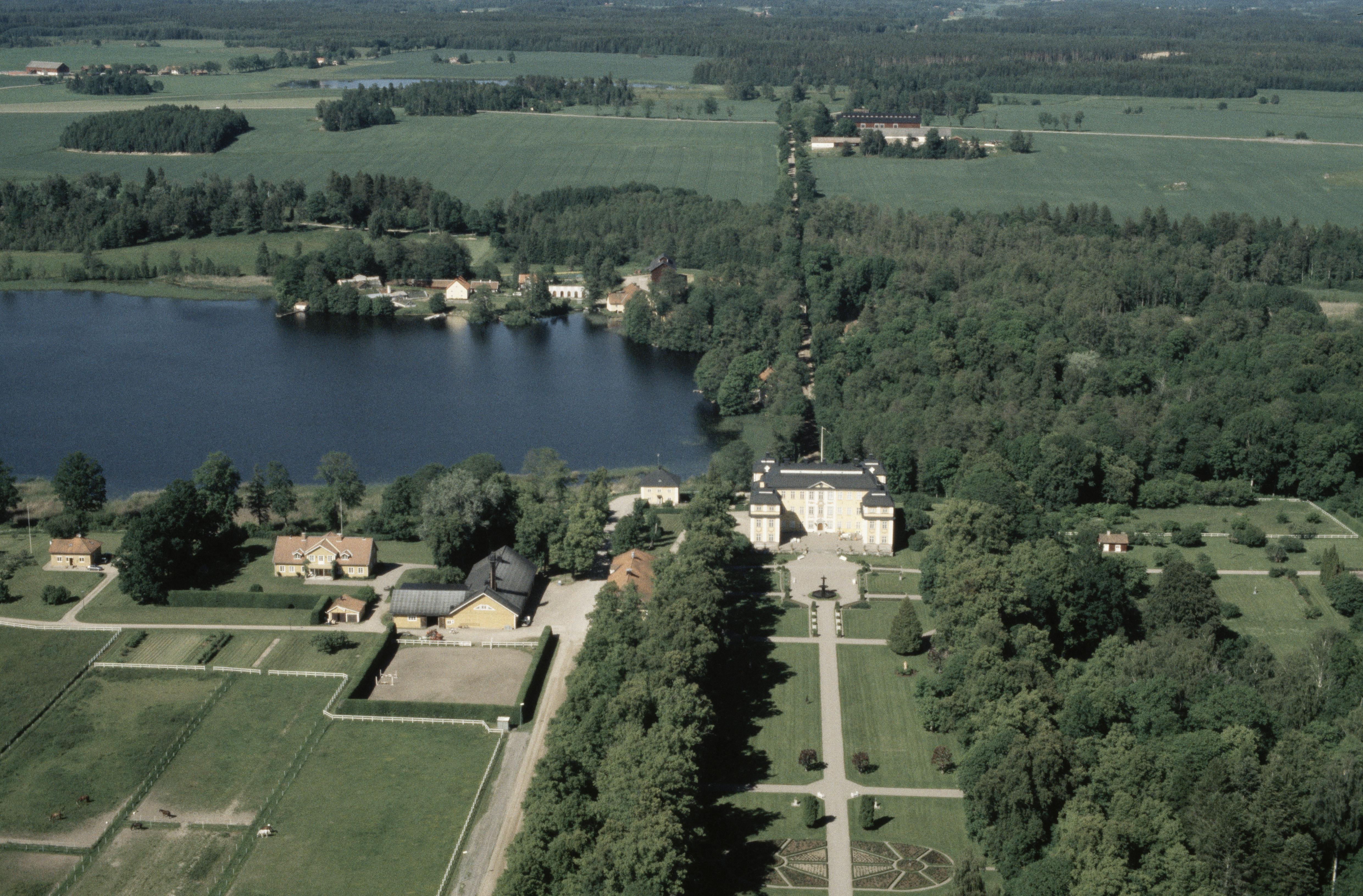 Beskrivning: Eriksbergs slott (skrivs även Ericsbergs slott), byggnadsminne RAÄnr Stora Malm 47:1, mellan Eriksbergssjön och Eriksbergsån. Bilden är tagen mot (väderstreck): NO