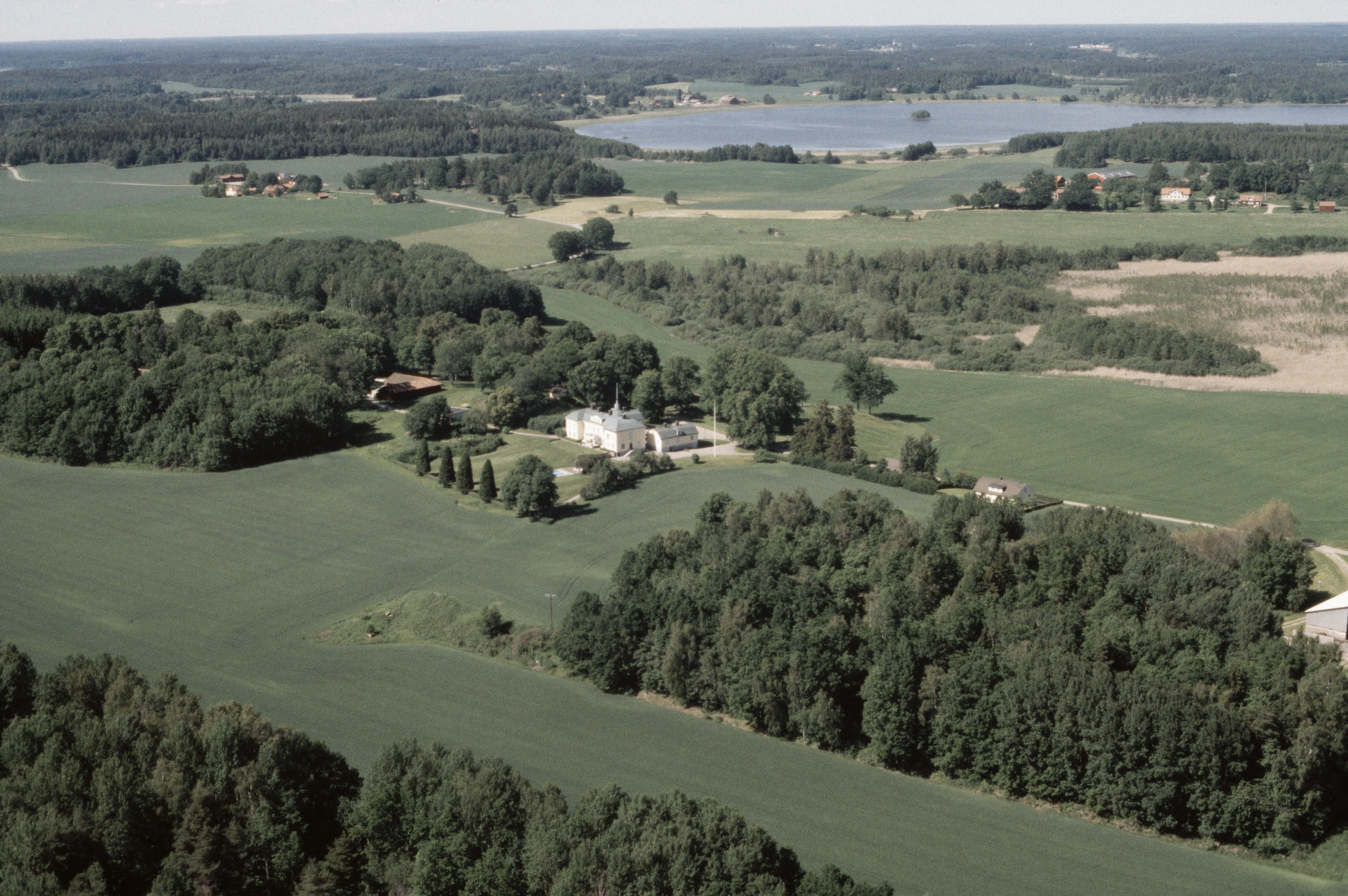 Beskrivning: Ekeby herrgård vid bildens mitt. Vid herrgården bytomt RAÄnr Halla 93. Till höger om bildens mitt gravfält RAÄnr Halla 4:1. Lillsjön i bildens övre del. Bilden är tagen mot (väderstreck): NV