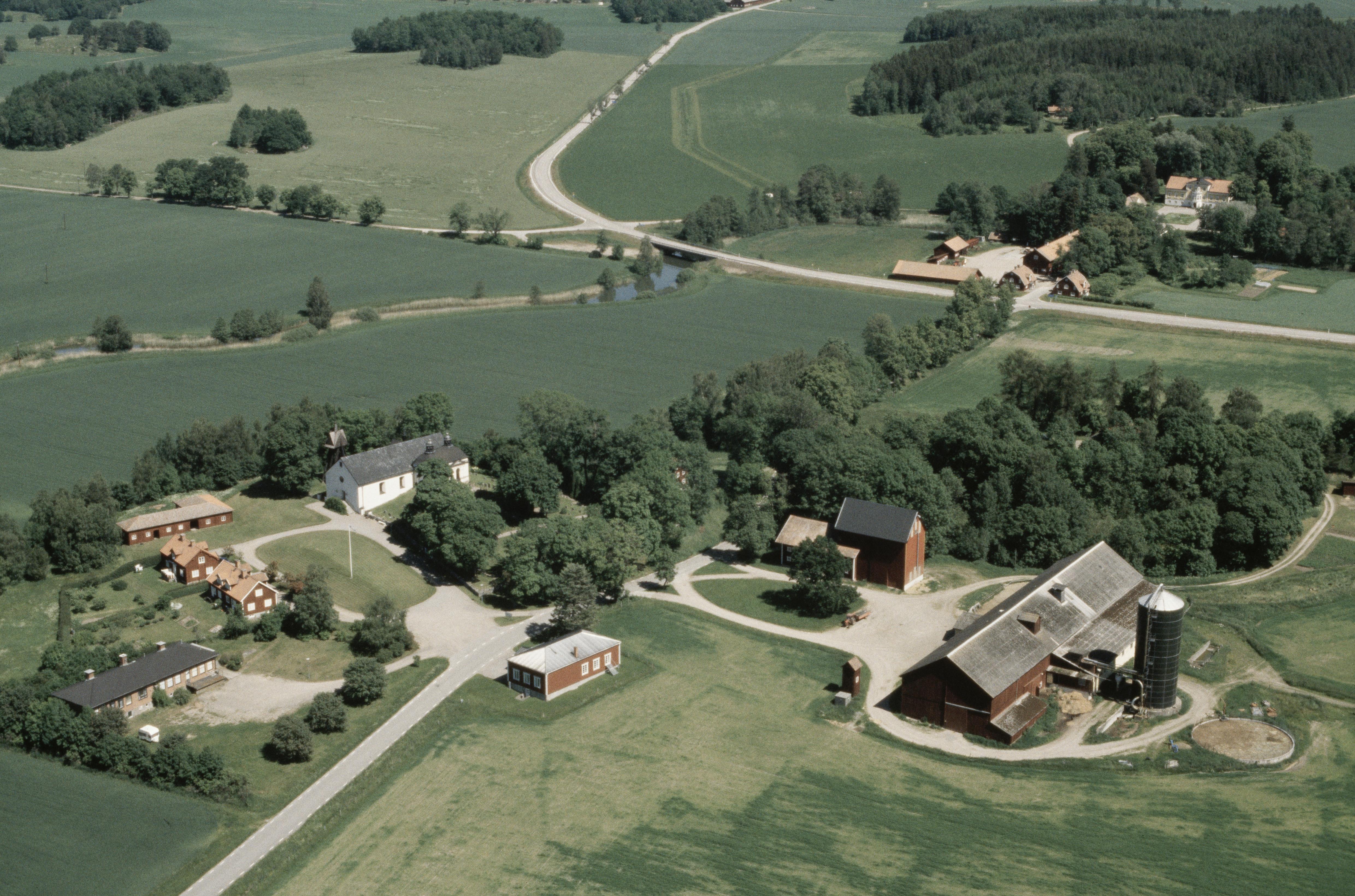 Beskrivning: Husby-Oppunda kyrka till vänster om bildens mitt. Vid kyrkan bytomt RAÄnr Husby-Oppunda 253:1. I bildens övre del Husbyån vid herrgården Husbygård. Bilden är tagen mot (väderstreck): N