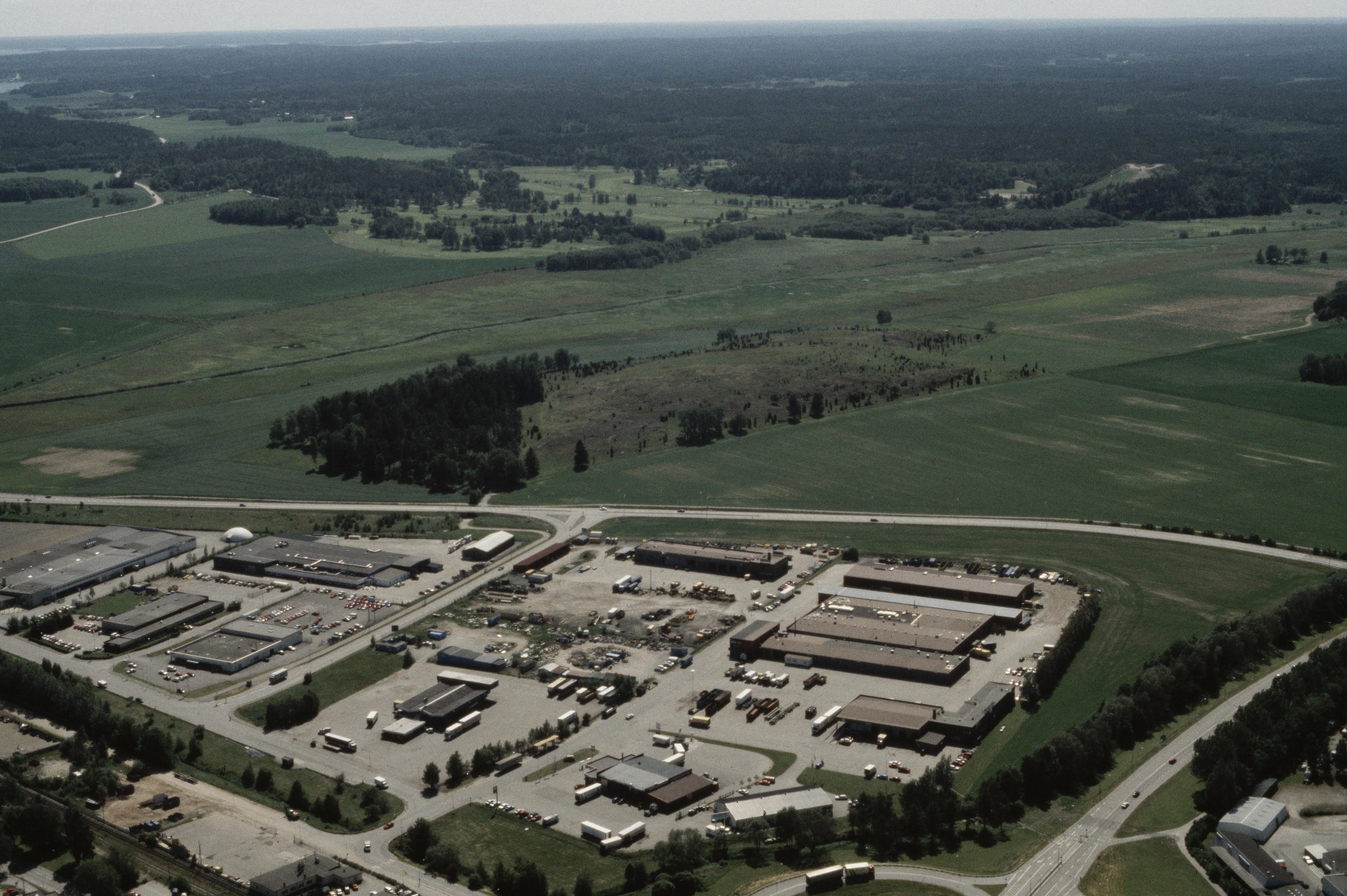Beskrivning: Gravfält Lindbacke RAÄnr Nyköping 349:1 vid bildens mitt. I bildens nedre del området Idbäcken i södra delen av Nyköpings stad. Bilden är tagen mot (väderstreck): SV