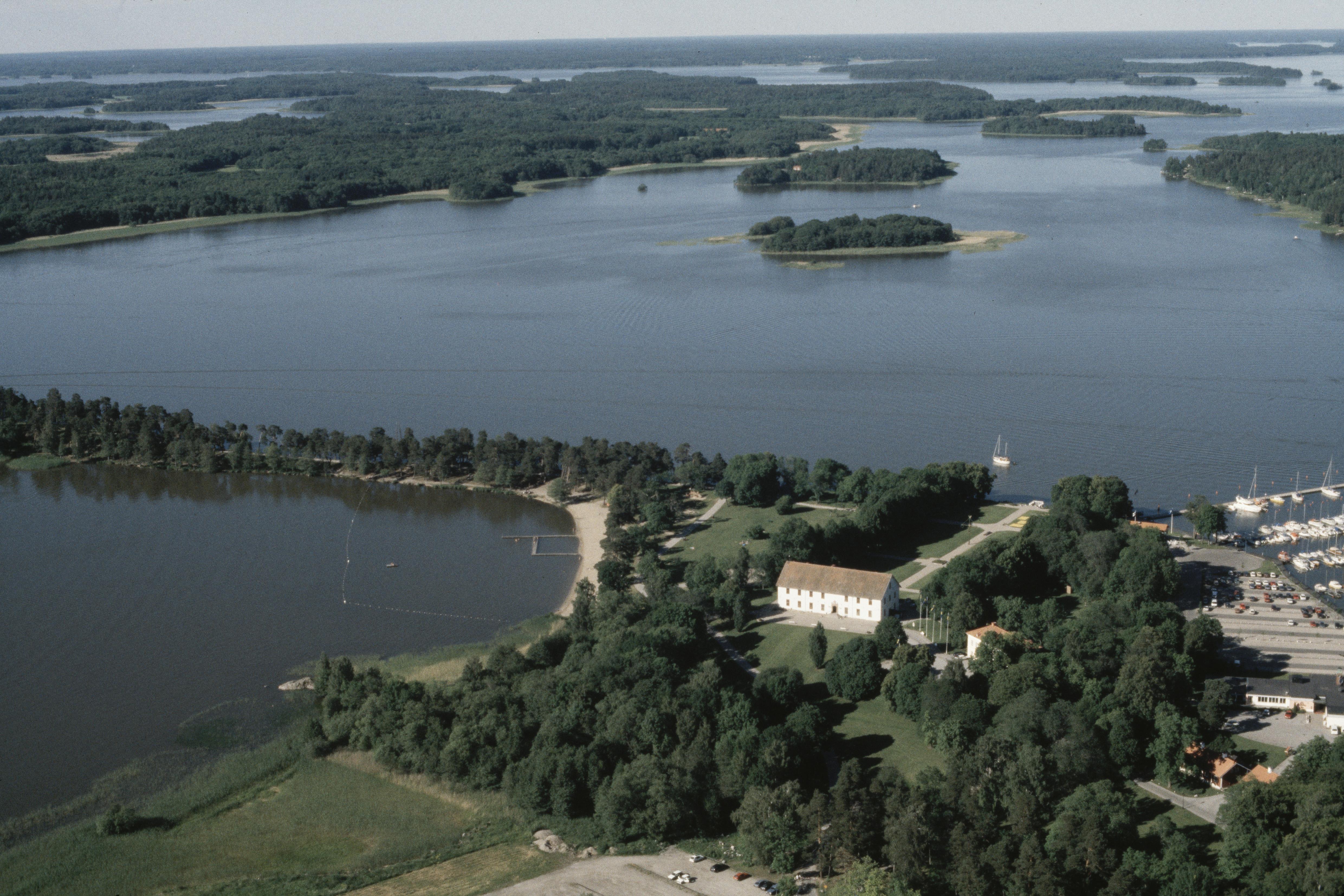 Beskrivning: Sundbyholms slott RAÄnr Sundby 14:1 vid Mälaren. Till höger om slottet Sundbyholms herrgård. Bilden är tagen mot (väderstreck): ONO