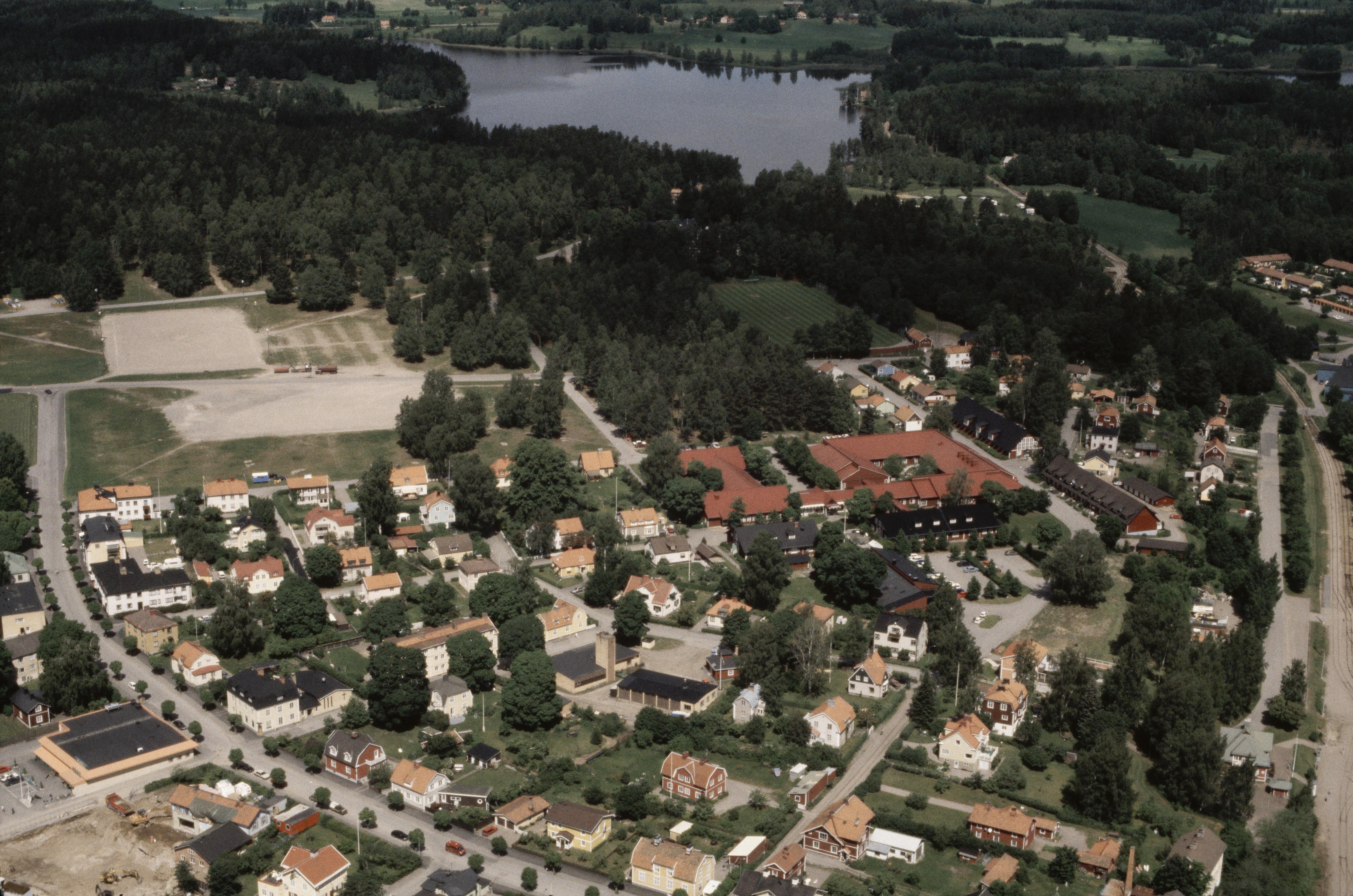Beskrivning: Malmköpings tätort. Vid bildens mitt boplats RAÄnr Lilla Malma 49:1. I bildens övre del Hosjön och Östersjön. Bilden är tagen mot (väderstreck): NNV