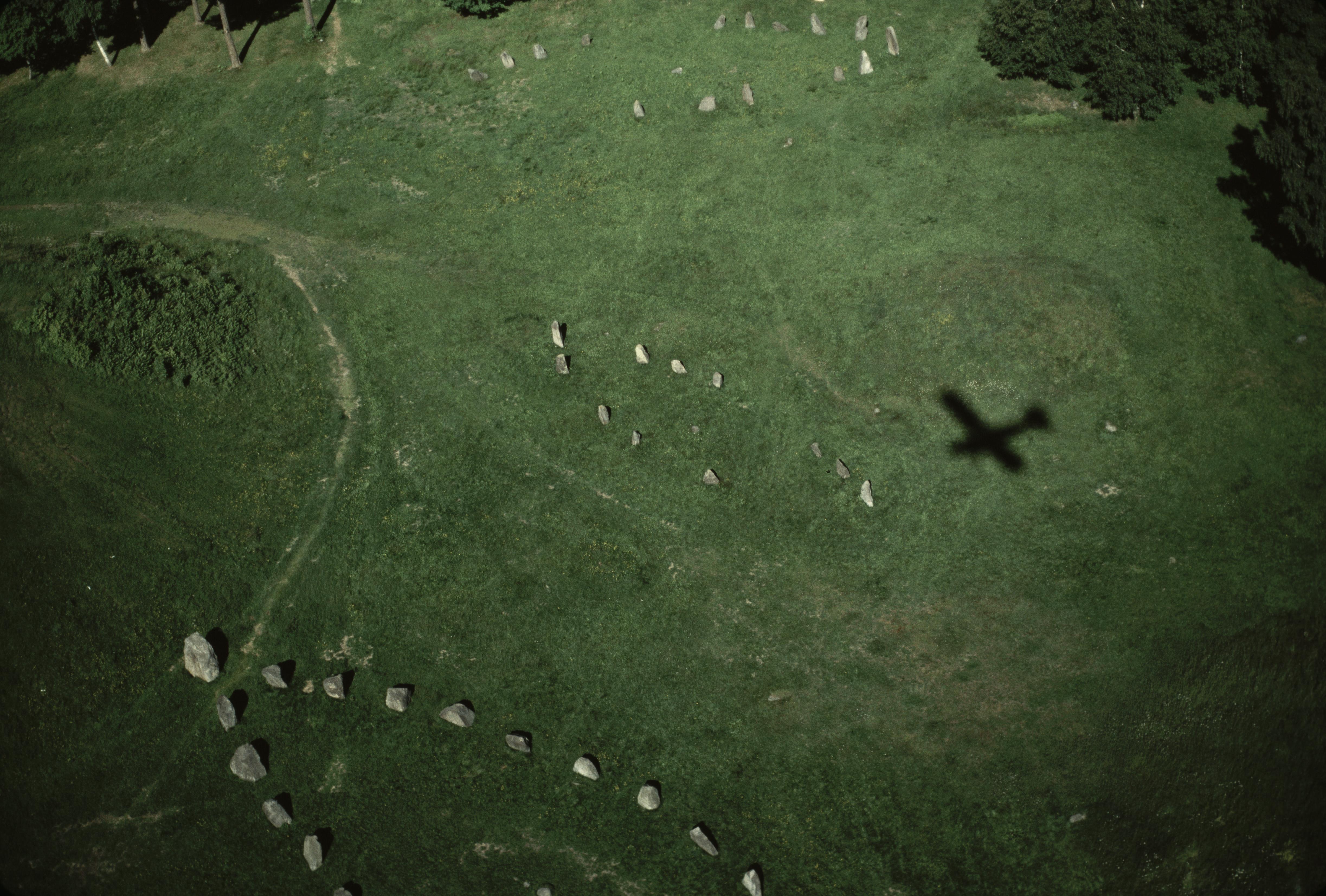 Anmärkning (övrig): Flygplanets skugga är med i bilden och avsikten var att illustrera flygfotografering av fornminnen. En av bilderna som togs vid detta fotograferingstillfället användes 1984-1985 som affischbild vid en utställning som bl.a. omhandlade detta tema.