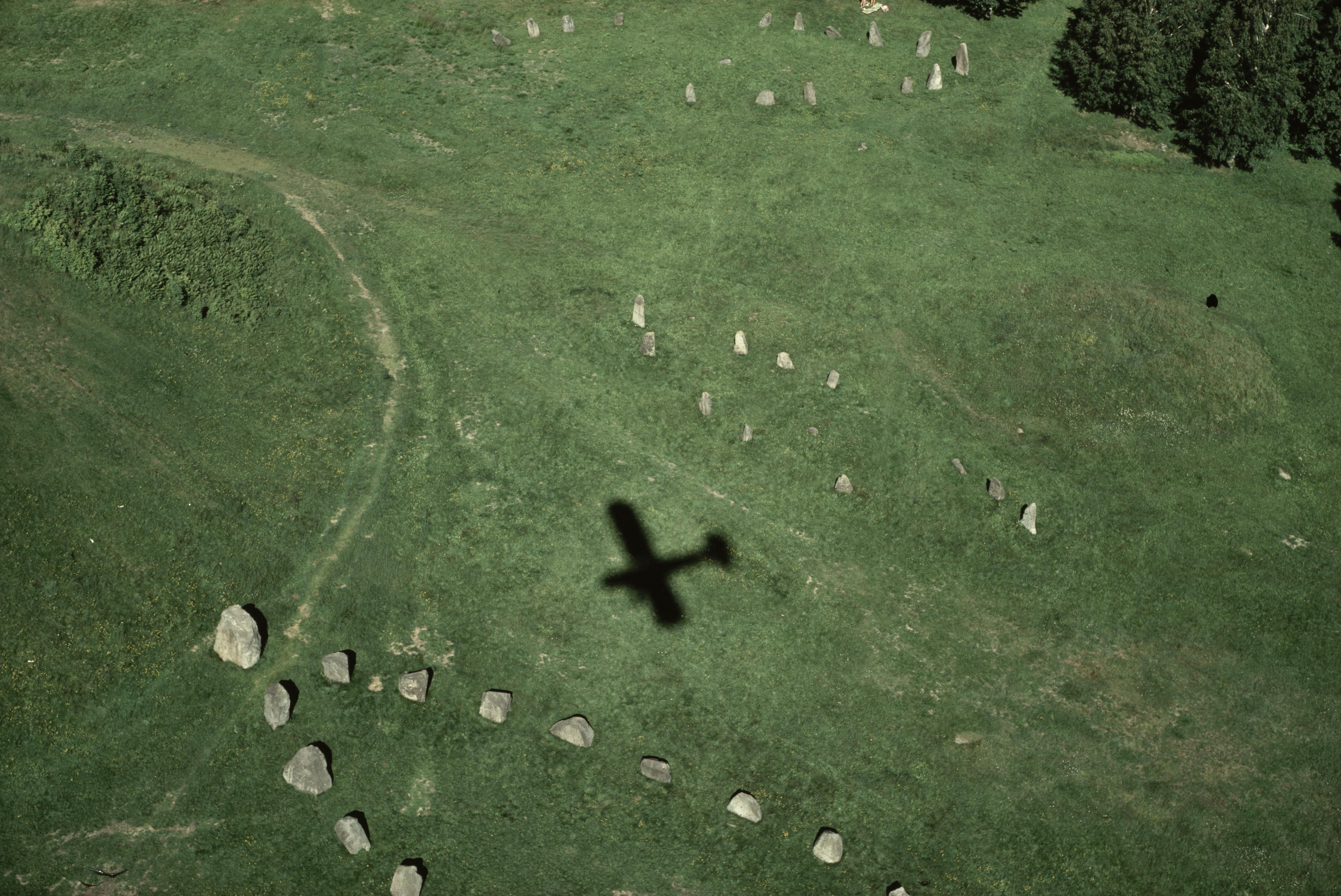 Anmärkning (övrig): Flygplanets skugga är med i bilden och avsikten var att illustrera flygfotografering av fornminnen. En av bilderna som togs vid detta fotograferingstillfället användes 1984-1985 som affischbild vid en utställning som bl.a. omhandlade detta tema.