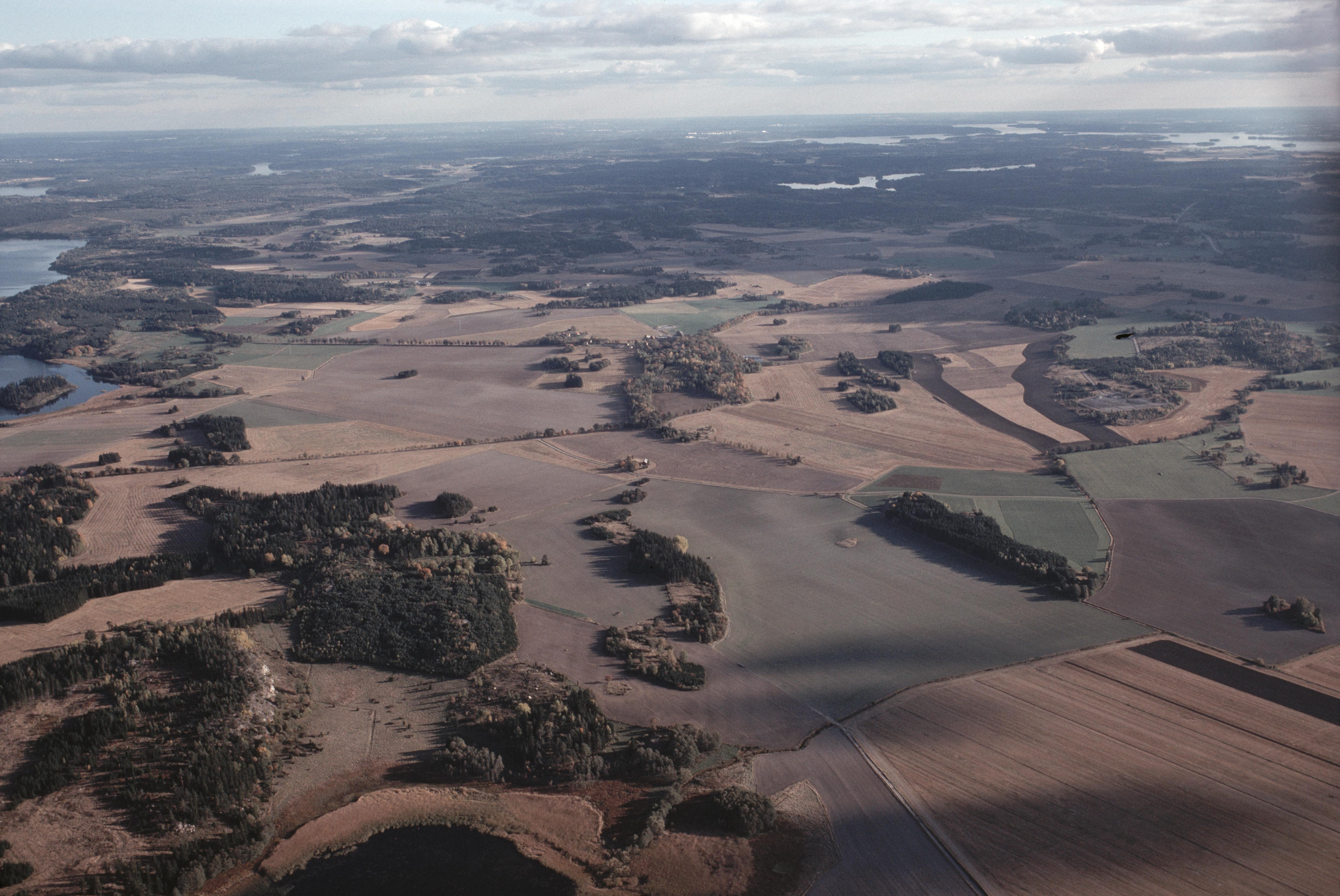 Beskrivning: Vid bildens mitt Aske herrgård / kursgård. Uppe till vänster Håtunaviken, norr om Sigtunafjärden i Mälaren. Bytomt RAÄnr Håtuna 120:1 till vänster under bildens mitt. Till höger i bildens övre del Lejondalssjön i socknet Håby-Tibble. Bilden är tagen mot (väderstreck): SSO