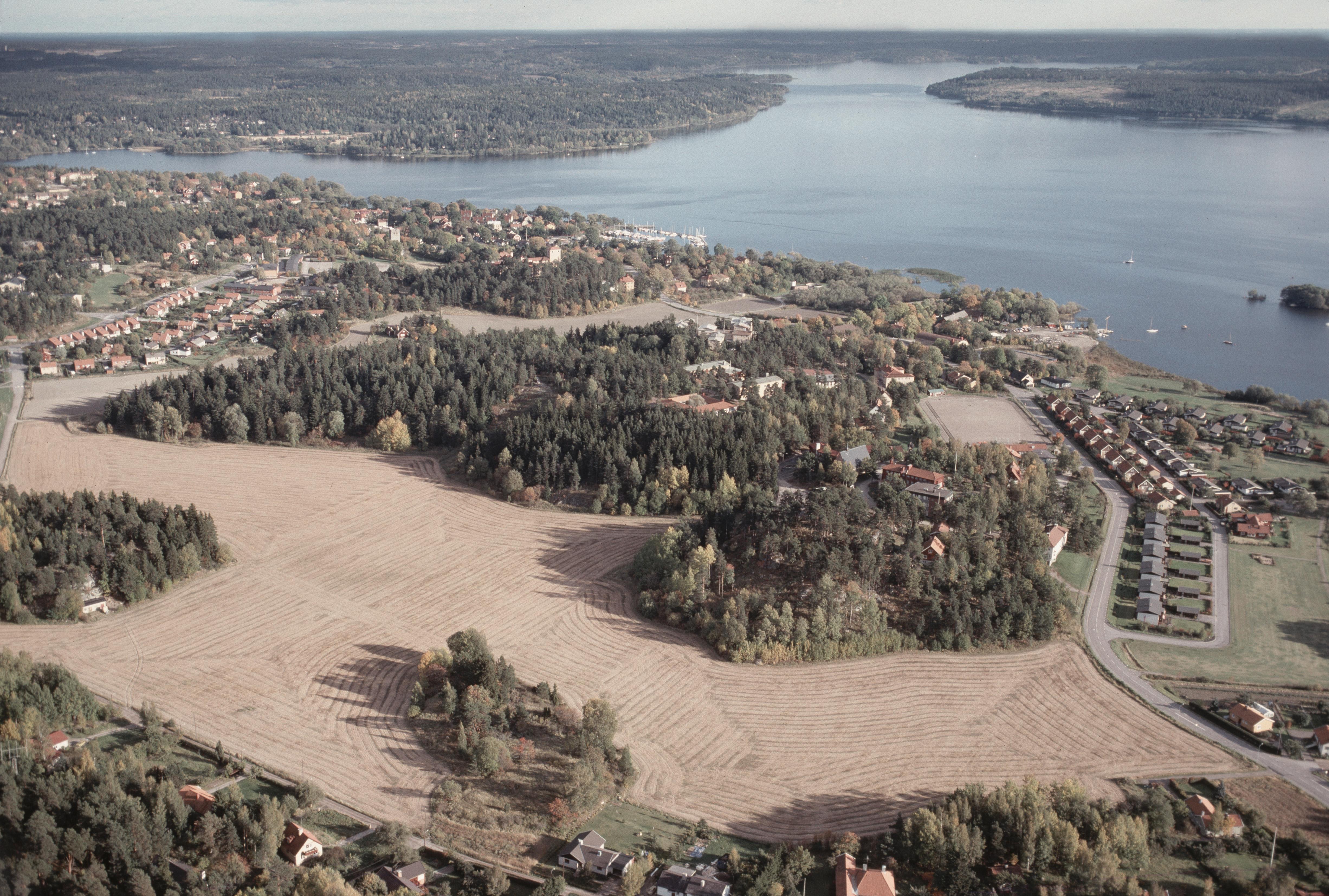 Beskrivning: Sigtuna stad vid Sigtunafjärden i Mälaren. Stadslager RAÄnr Sigtuna 195:1 m.fl. vid bildens mitt. Bilden är tagen mot (väderstreck): SO