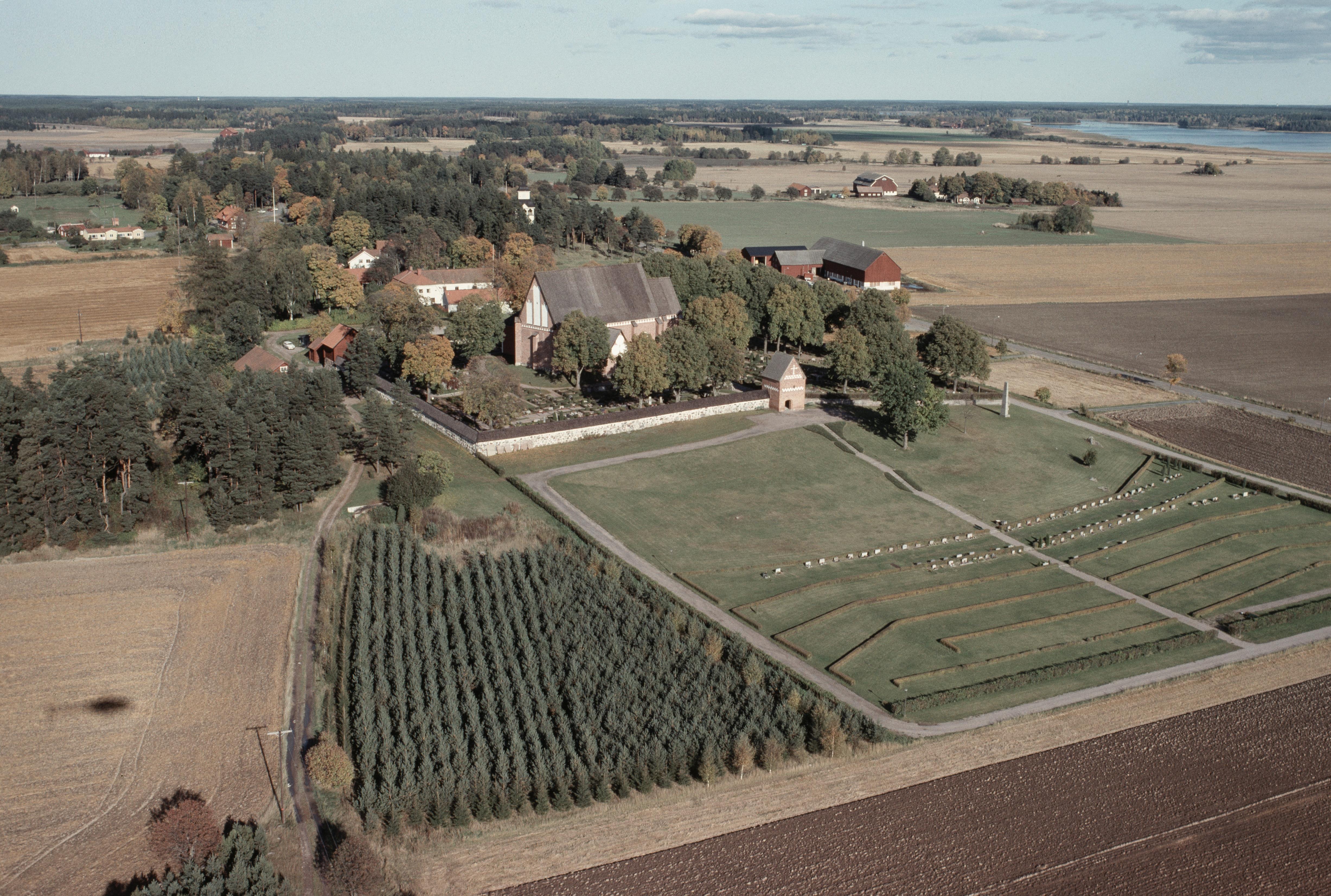 Beskrivning: Över bildens mitt Vendels kyrka. Till vänster om bildens mitt gravfält RAÄnr Vendel 27:1. Till höger om bildens mitt minnesmärke och båtgravfält RAÄnr Vendel 9:1-2. Bilden är tagen mot (väderstreck): NO