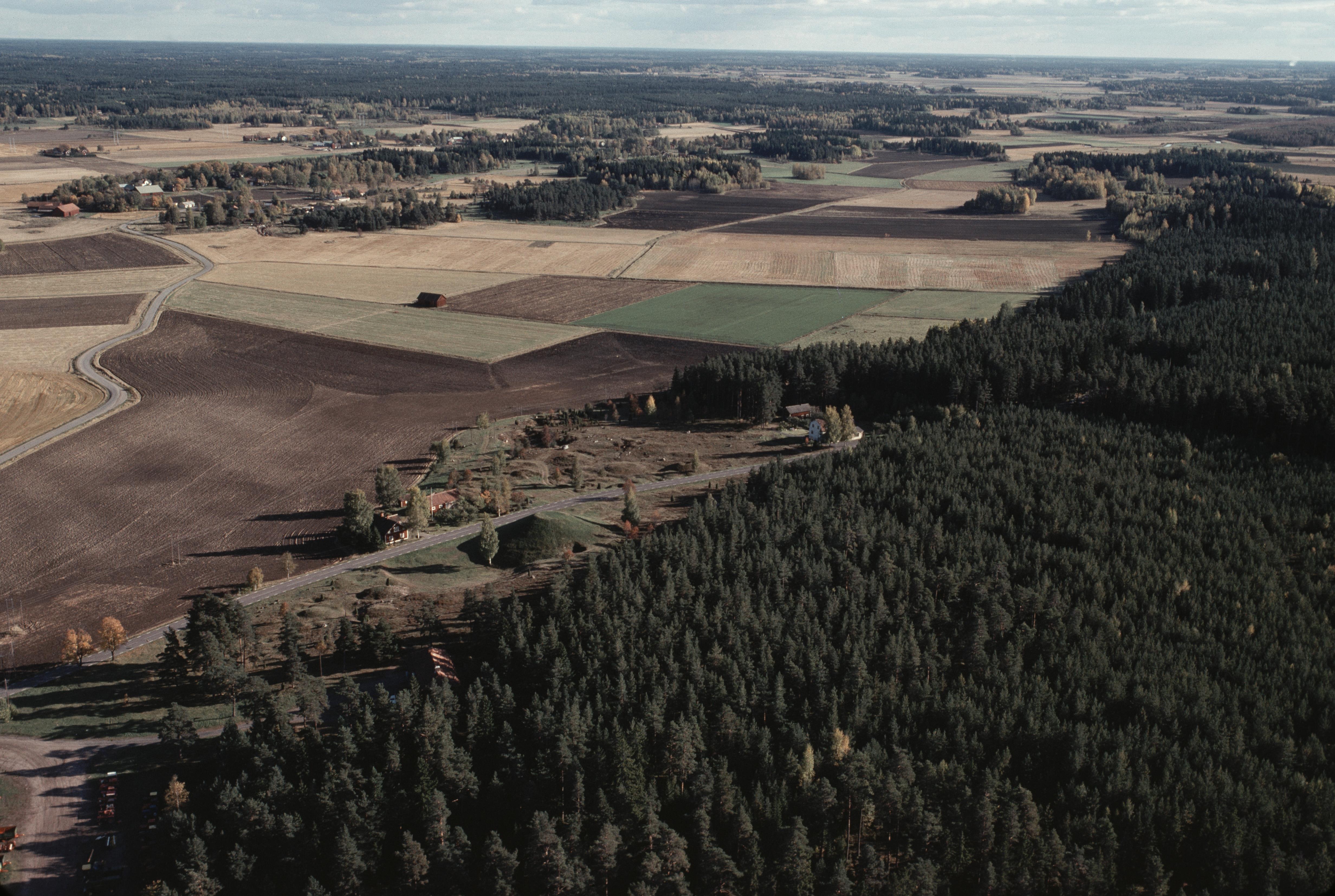 Beskrivning: Husby. Till vänster under bildens mitt Ottarshögen RAÄnr Vendel 1:1 vid gravfälten RAÄnr Vendel 2:1 och 3:1. I bildens övre del Väster-Ekeby vid Vendelsån. Bilden är tagen mot (väderstreck): SO