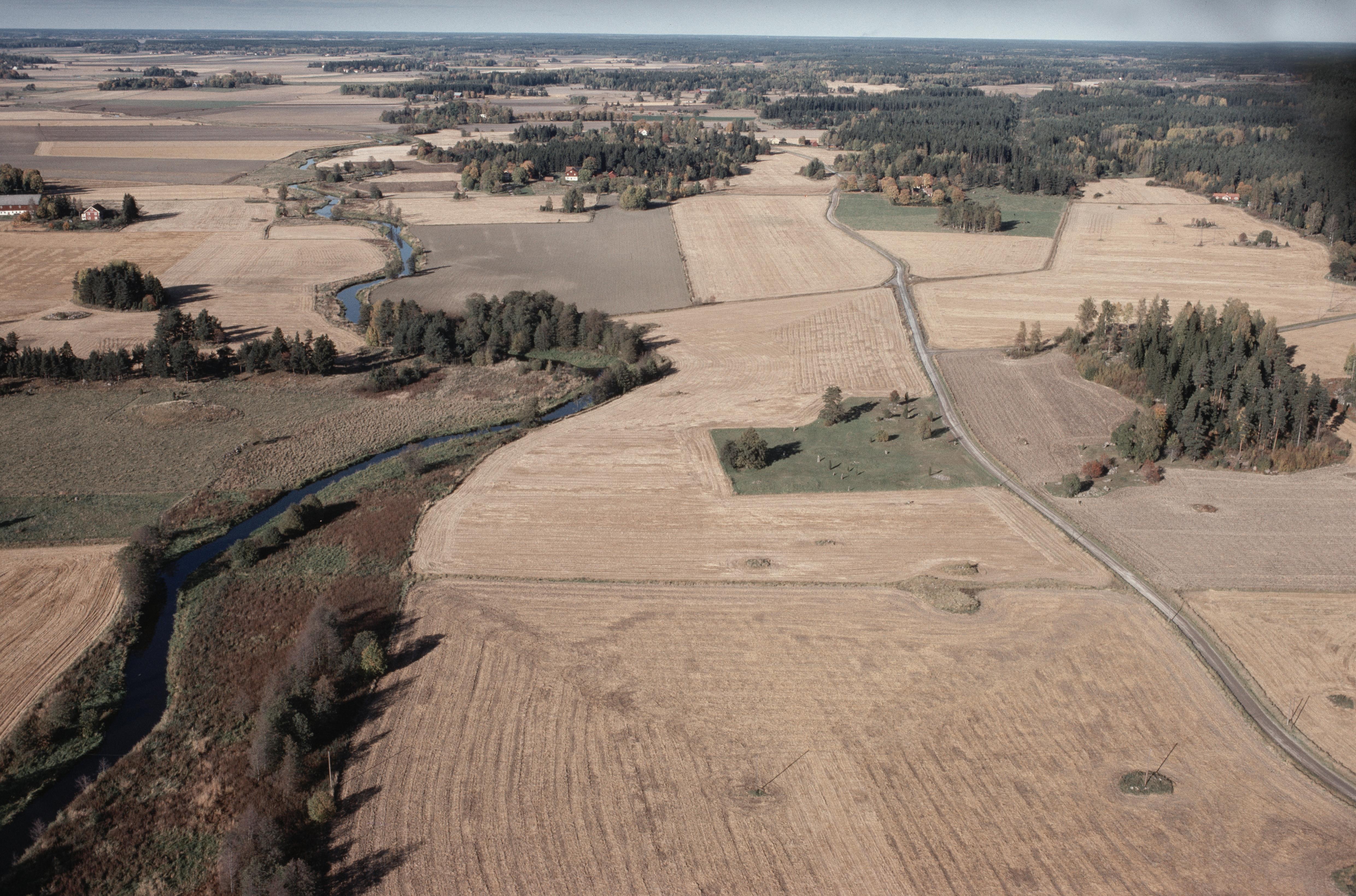 Beskrivning: Vid bildens mitt gravfält och offerkälla RAÄnr Tensta 50:1-2, 51:1 m.fl. vid Vendelån sydväst om Gödåkers by. Bilden är tagen mot (väderstreck): S