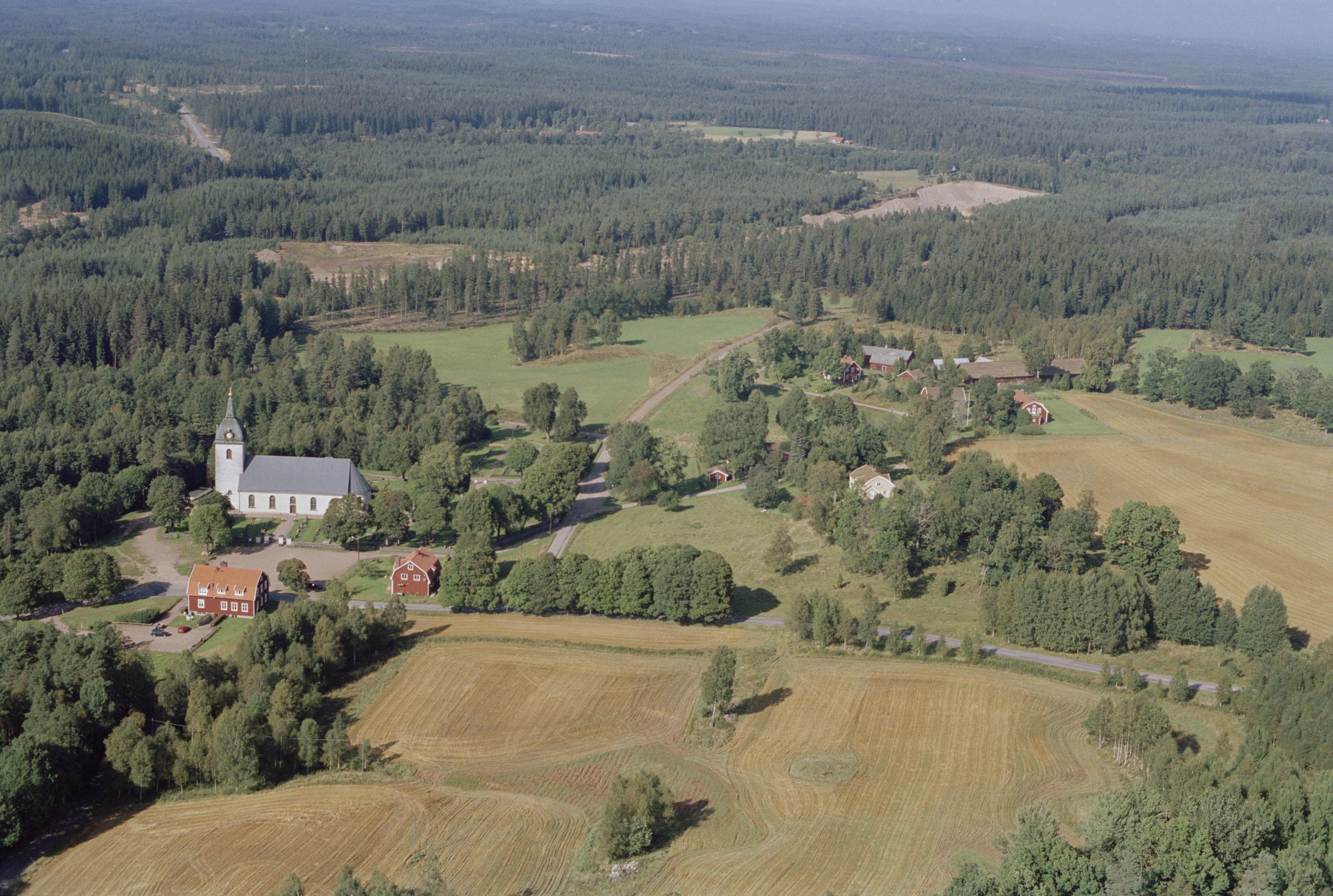 Beskrivning: Villstads kyrka och kyrkby. Bilden är tagen mot (väderstreck): N