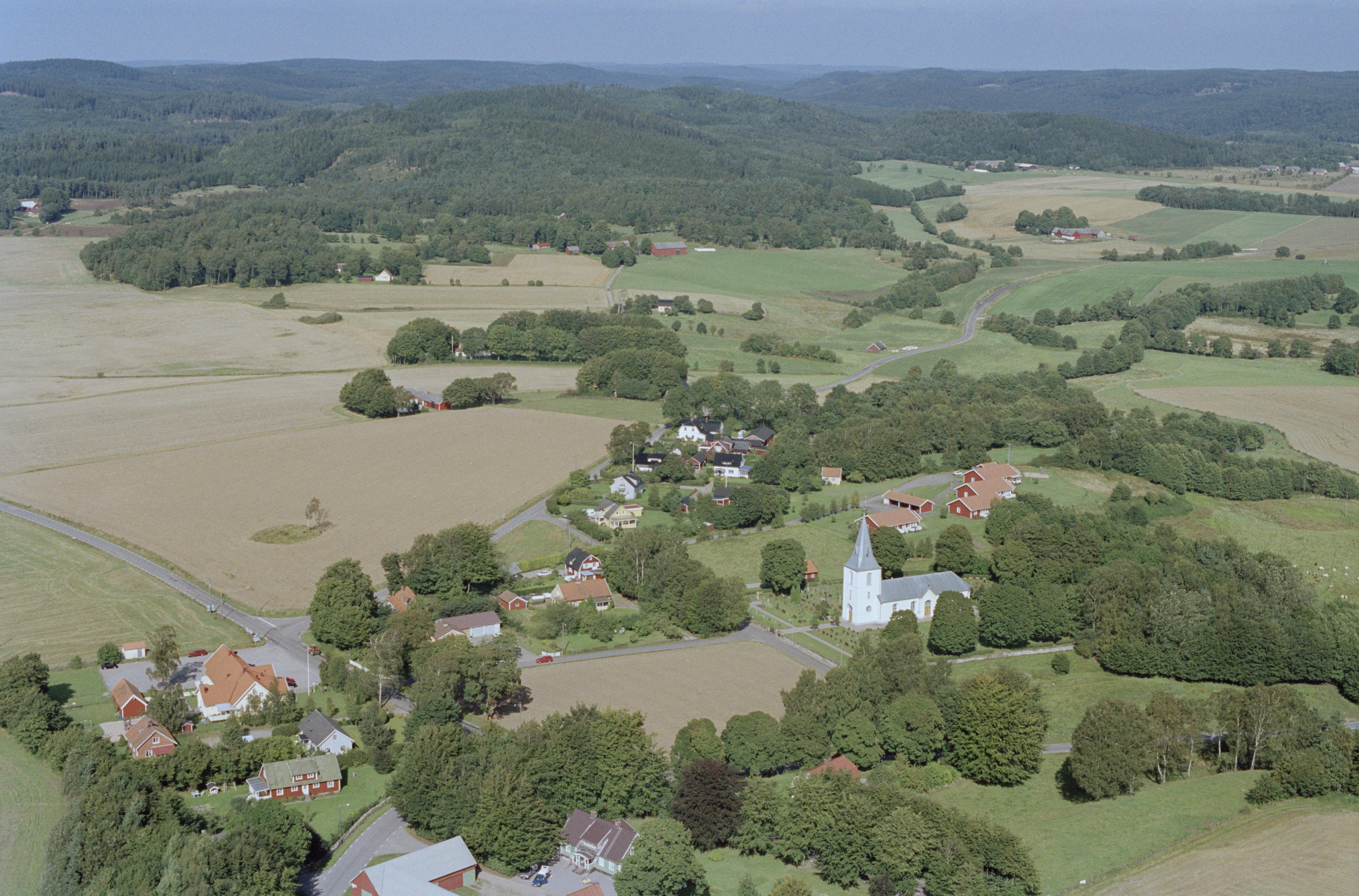 Beskrivning: Asige kyrka och kyrkby. Bilden är tagen mot (väderstreck): NO