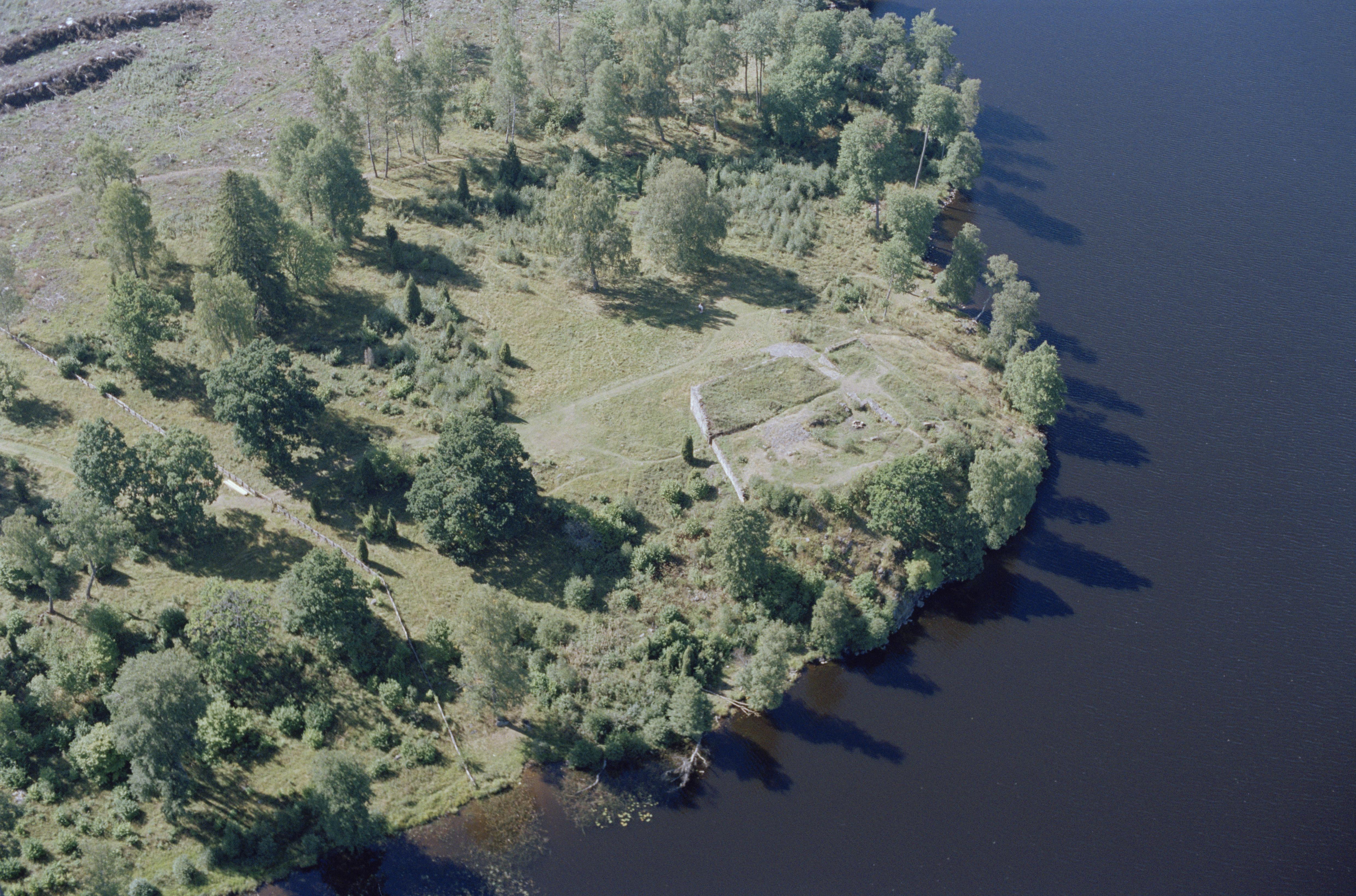Beskrivning: Slottsruin Hultaby slott RAÄnr Näsby 15:1 på Slottshalvön vid Norrasjön. Bilden är tagen mot (väderstreck): SV