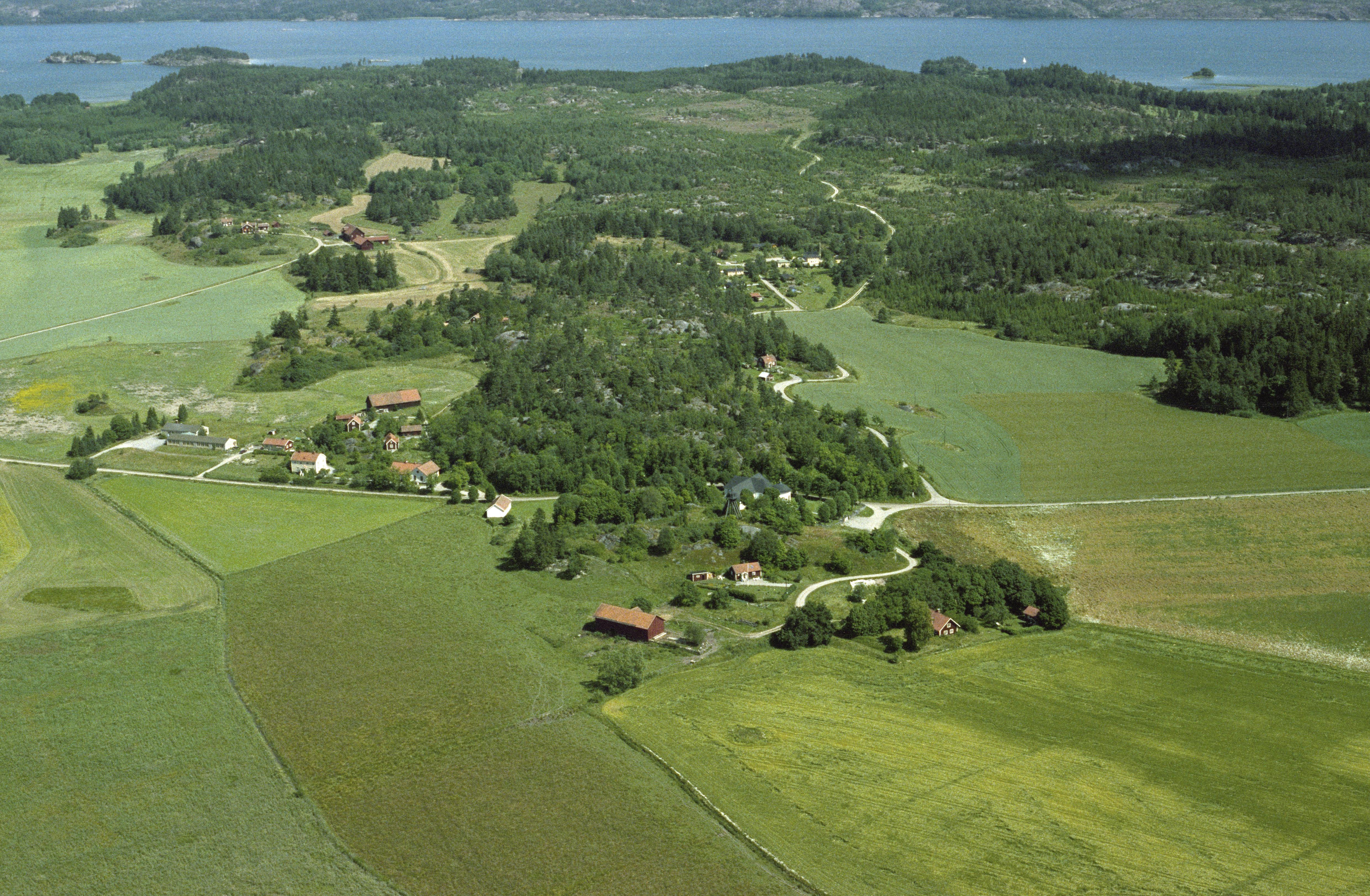 Beskrivning: Mörkö kyrka och kyrkby. Kyrkan under bildens mitt. Bilden är tagen mot (väderstreck): NO