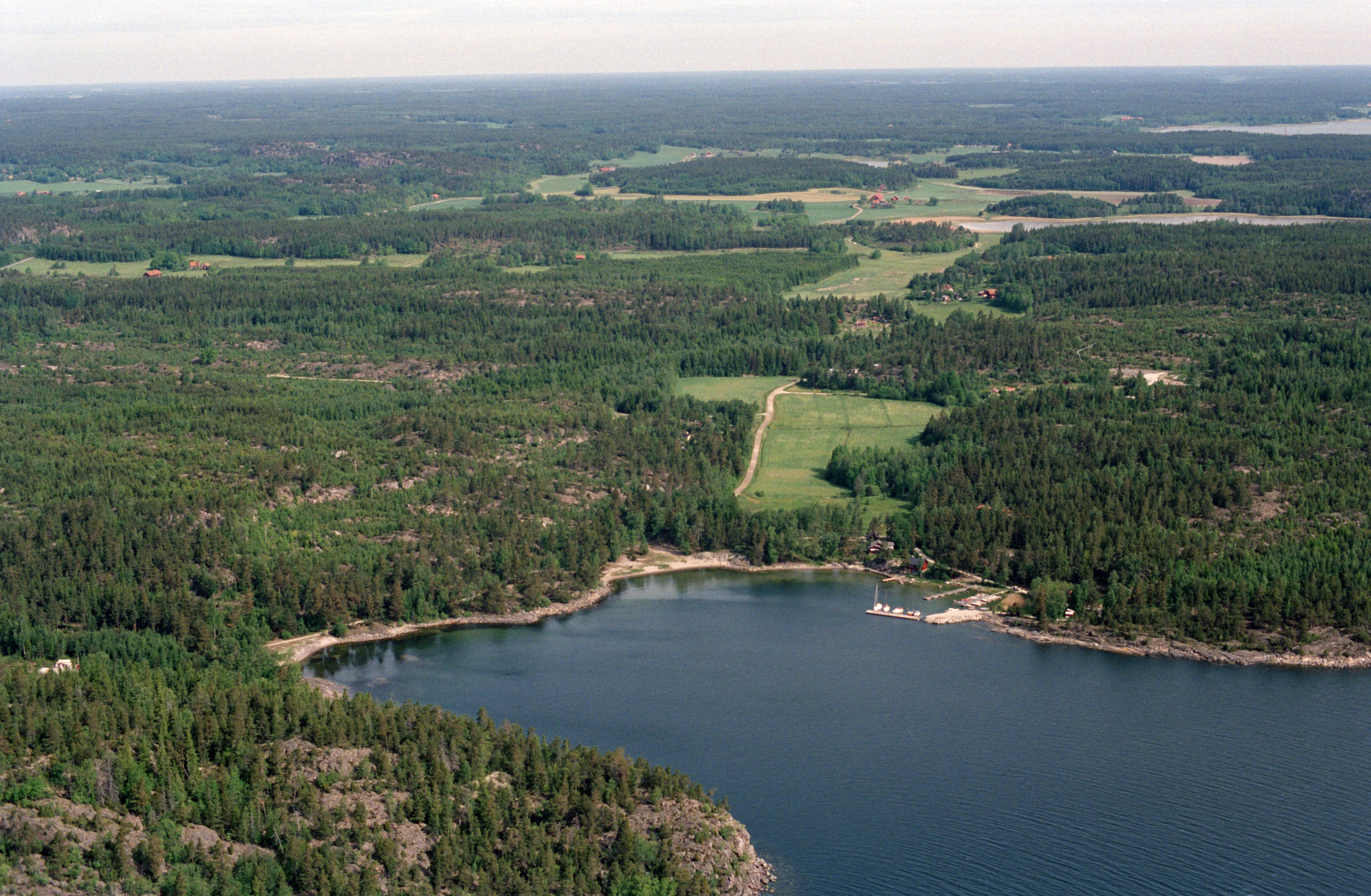 Beskrivning: Västra Koviken i Bråviken. Vid bildens mitt stenåldersboplatser vid Lilla Skara RAÄnr Tunaberg 351:1, 389:1 och 661 m.fl. Bilden är tagen mot (väderstreck): N