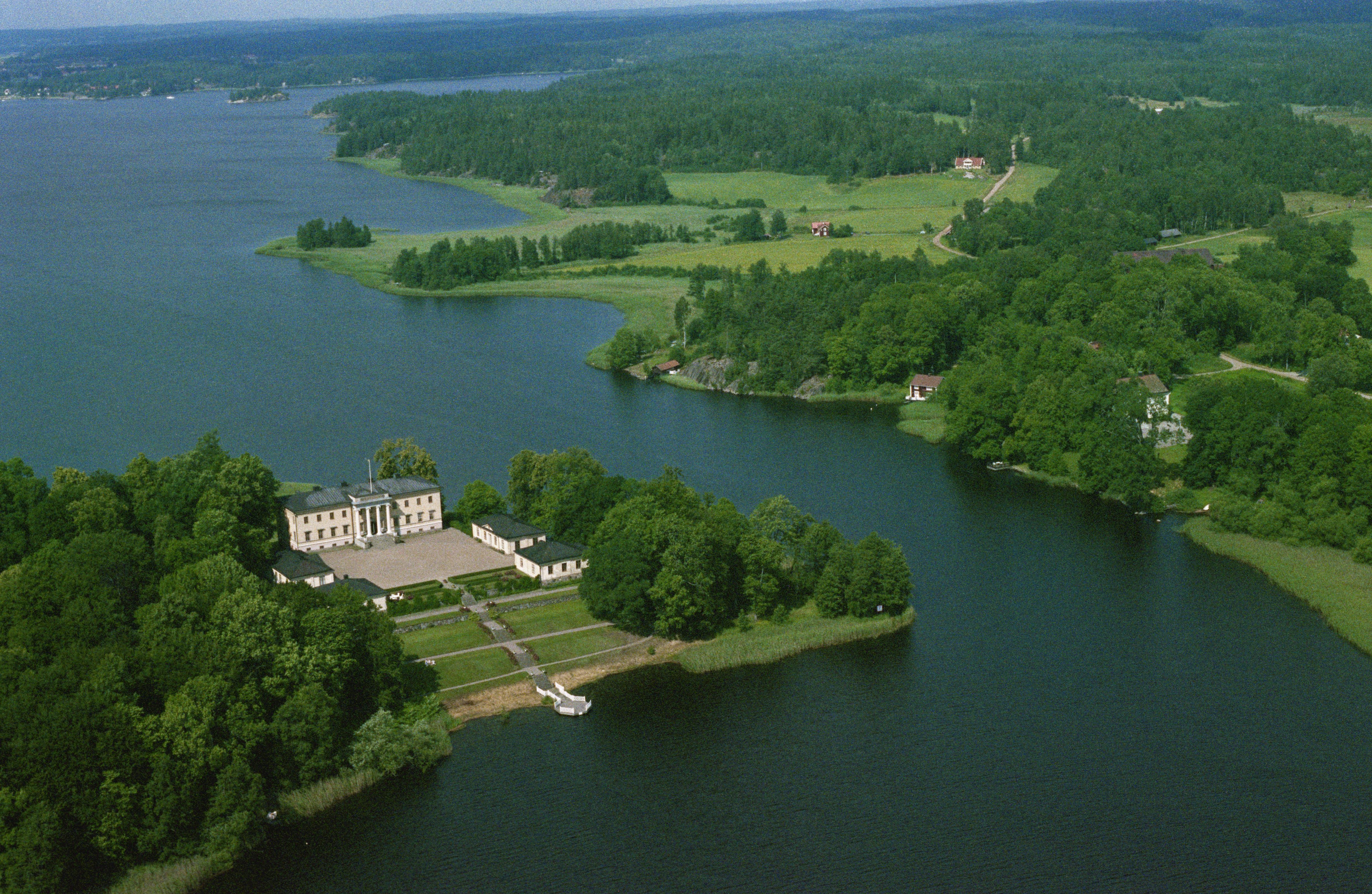 Beskrivning: Till vänster Stjernsunds slott (skrivs även Stjärnsunds slott) byggnadsminne Askersund 5:1 vid sjön Alsen. Till höger Edö herrgård / säteri. Bilden är tagen mot (väderstreck): N