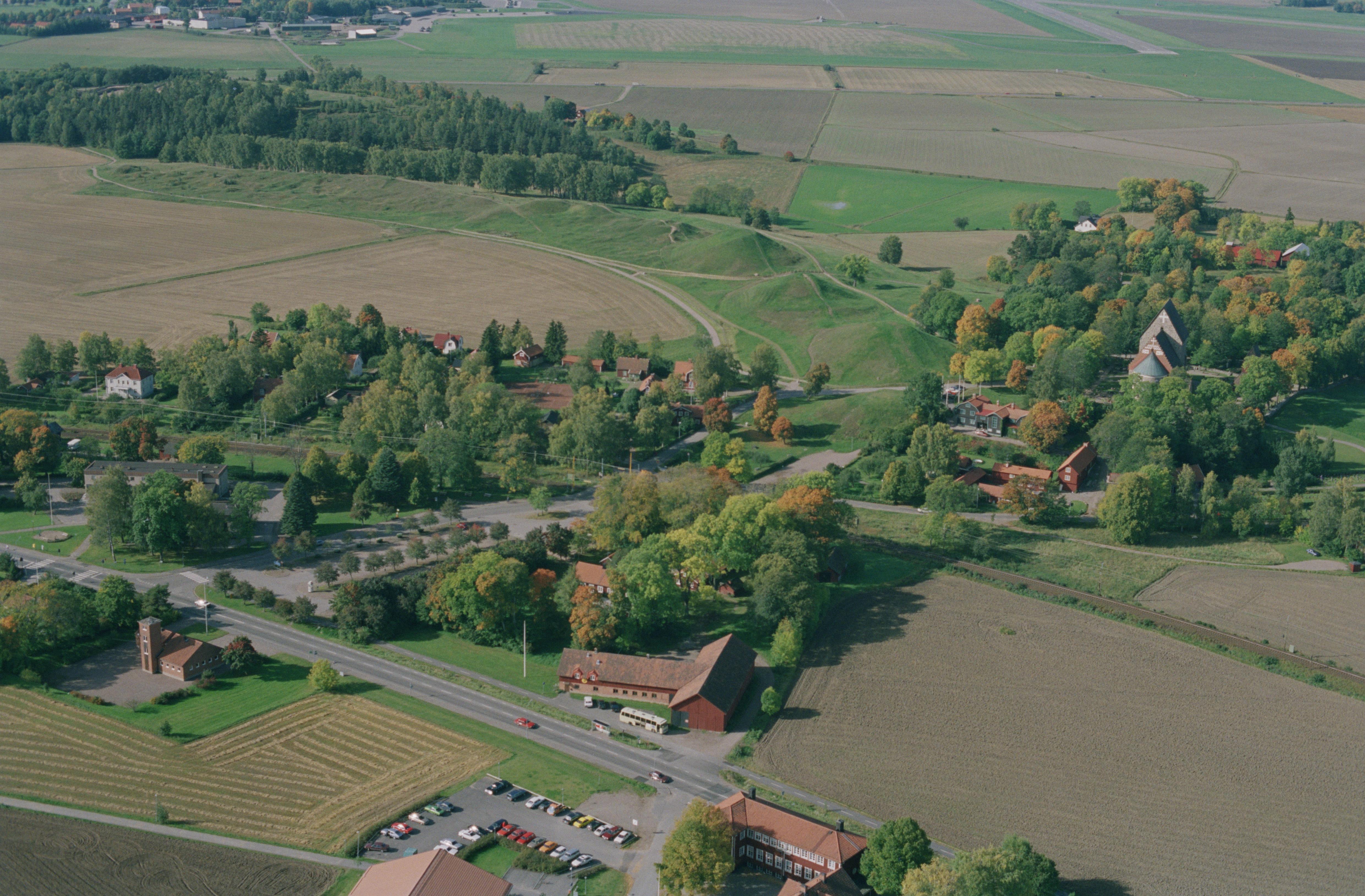 Beskrivning: Fyrisåns dalgång. I bildens övre del Gamla Uppsala kyrka RAÄnr Uppsala 774, Kungshögarna gravfält Uppsala 123:1, boplats Uppsala 263:1 m.fl. Bilden är tagen mot (väderstreck): V