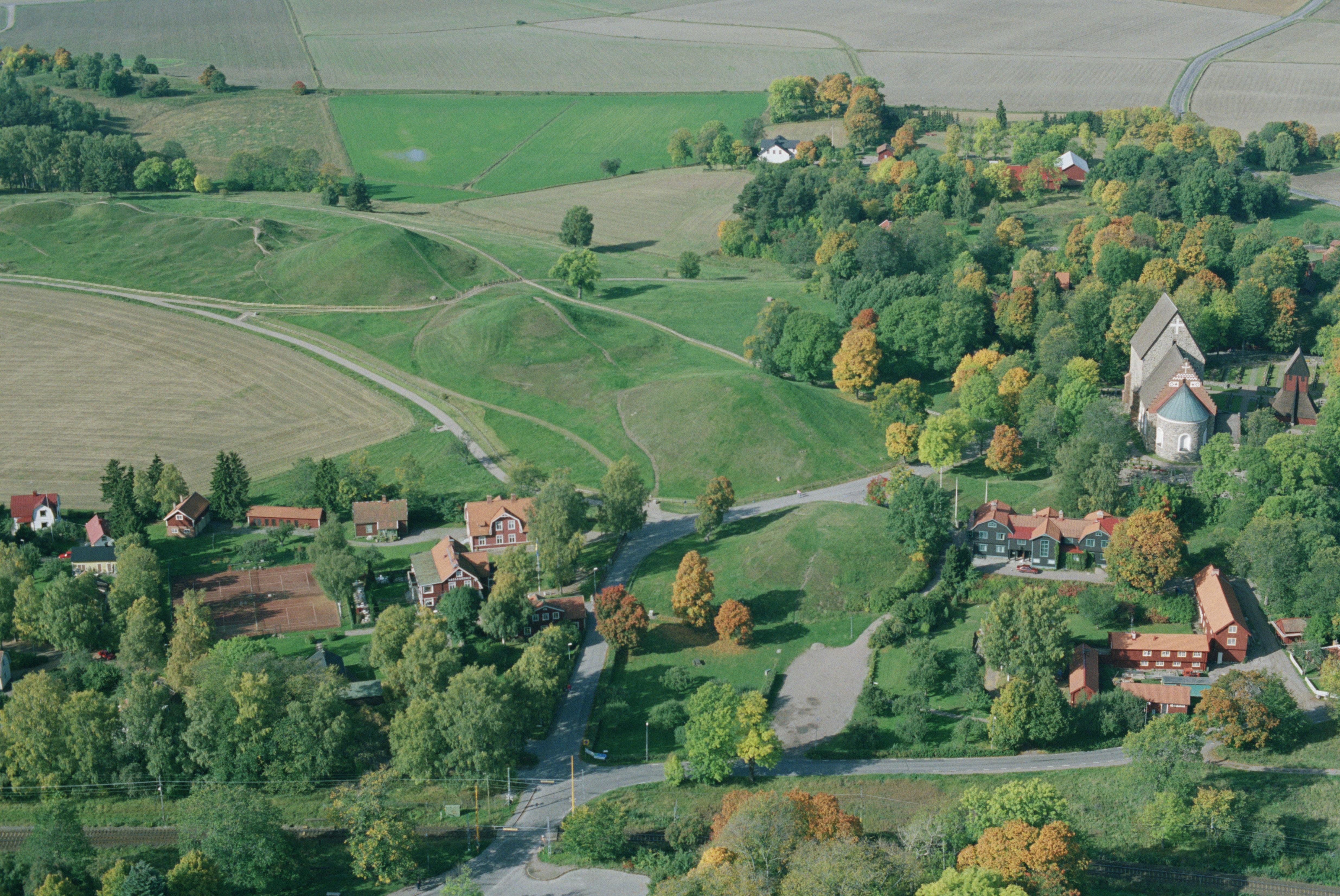 Beskrivning: Fyrisåns dalgång. I bildens övre del Gamla Uppsala kyrka RAÄnr Uppsala 774, Kungshögarna gravfält Uppsala 123:1, boplats Uppsala 263:1 m.fl. Bilden är tagen mot (väderstreck): V